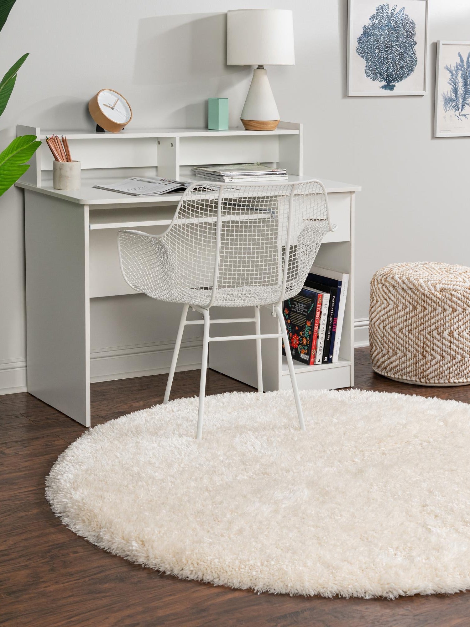 Bone 5' 3 x 5' 3 Marilyn Monroe Opulence Shag Round Area Rug Thick Soft Touch Fluffy & Plush Shaggy Pile