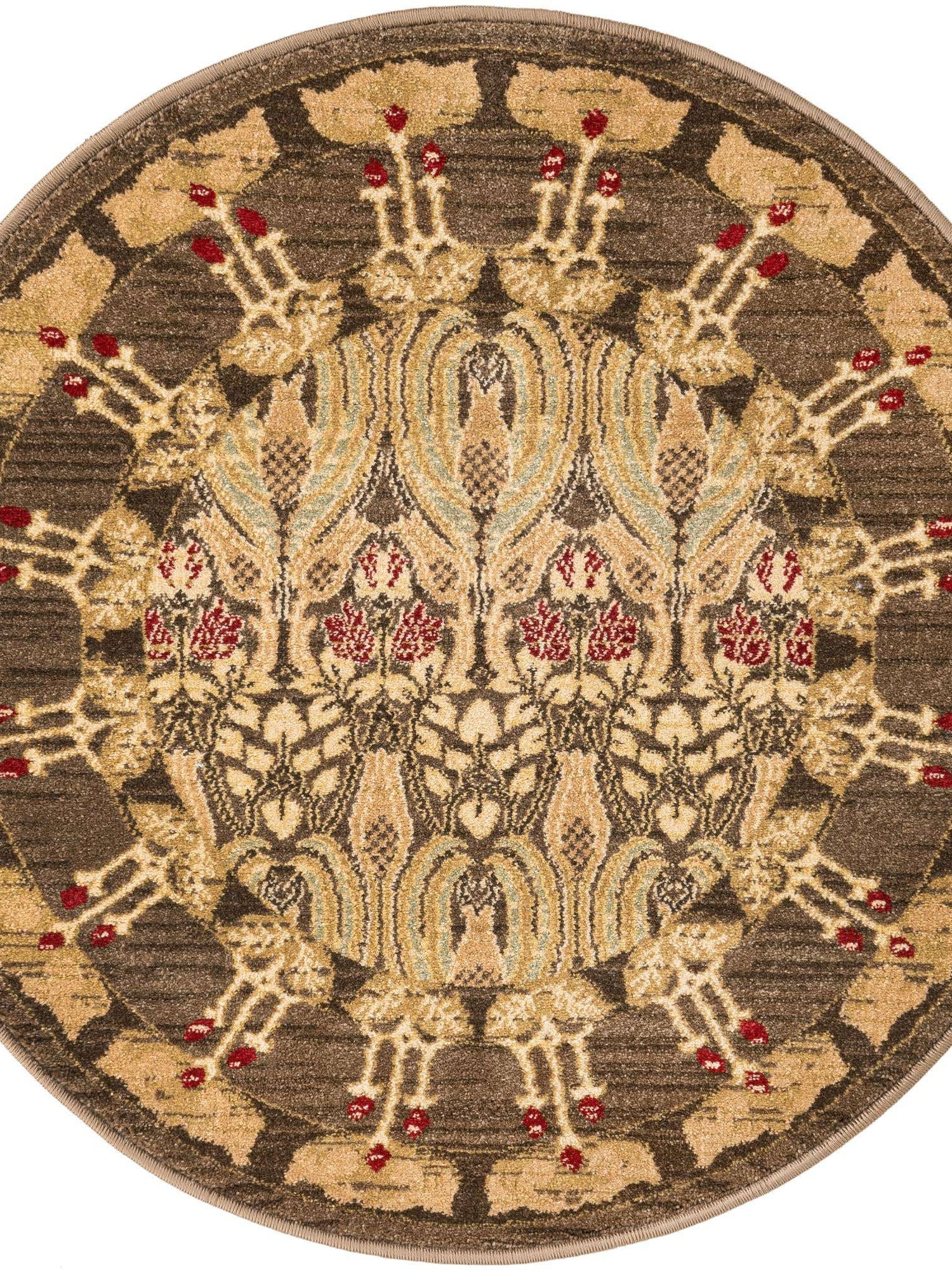 Brown 3' 1 x 3' 1 Edinburgh Round Area Rug 100% Polypropylene Easy Clean With Cotton Backing Traditional Classic Design Carpet for Living, Dining Room, Office