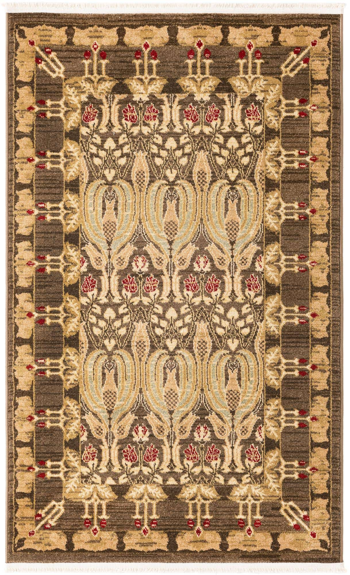 Brown 3' 1 x 5' 3 Edinburgh Rectangle Area Rug 100% Polypropylene Easy Clean With Cotton Backing Traditional Classic Design Carpet for Living, Dining Room, Office
