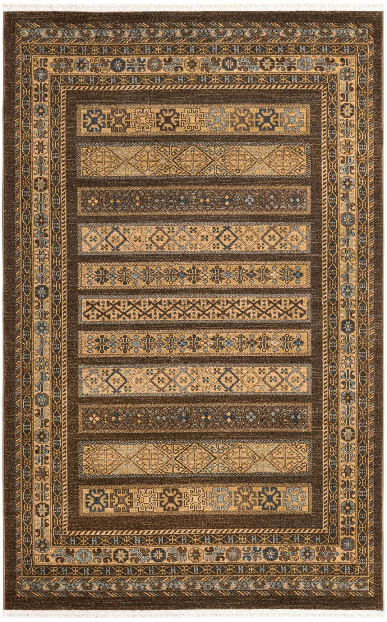 Brown 5' 1 x 8' Fars Rectangle Area Rug 100% Polypropylene Unique Traditional Carpet for Classical Living, Dining Room & Office Spaces