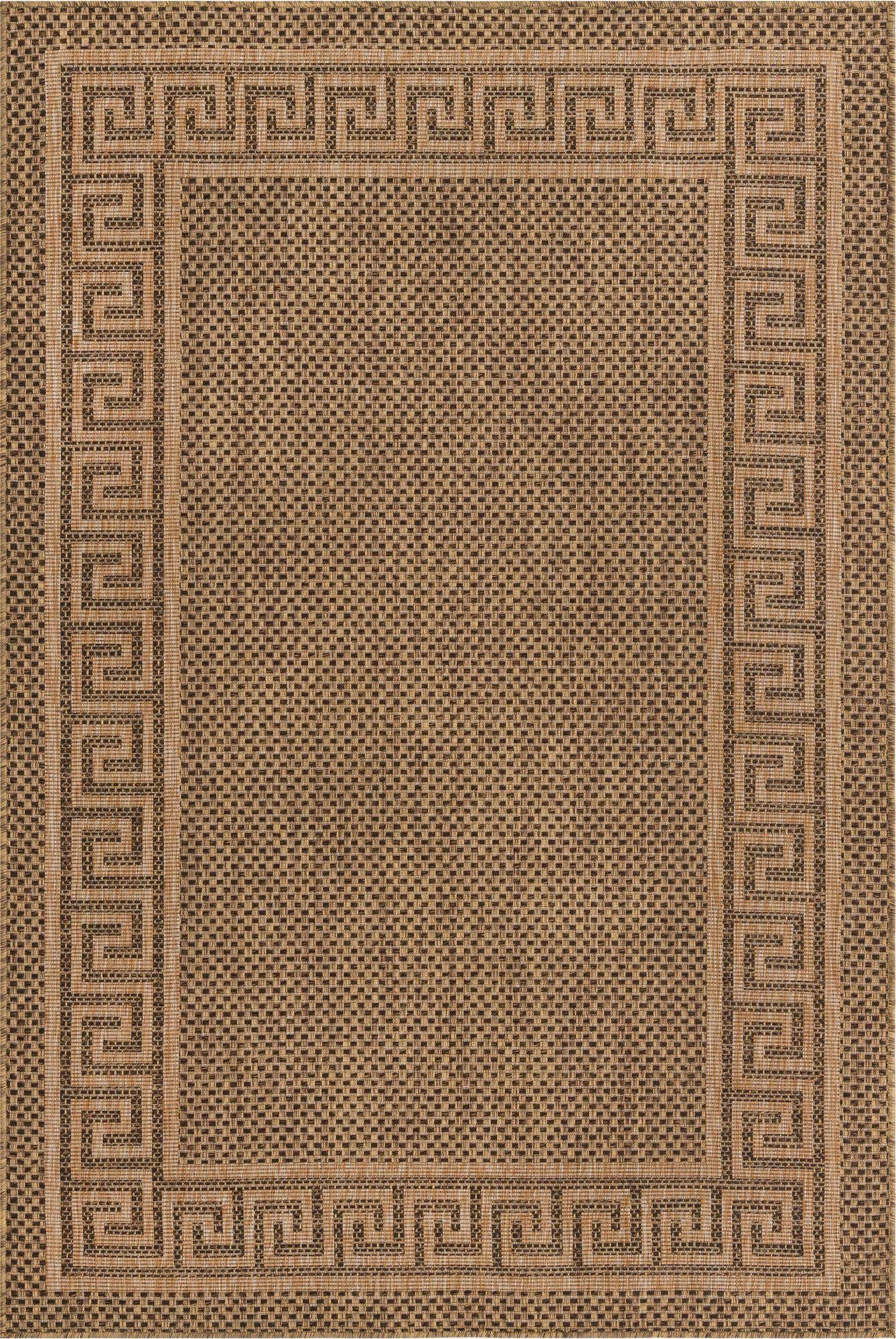 Brown 5' 3 x 8' Outdoor Border Rectangle Area Rug Weather R...