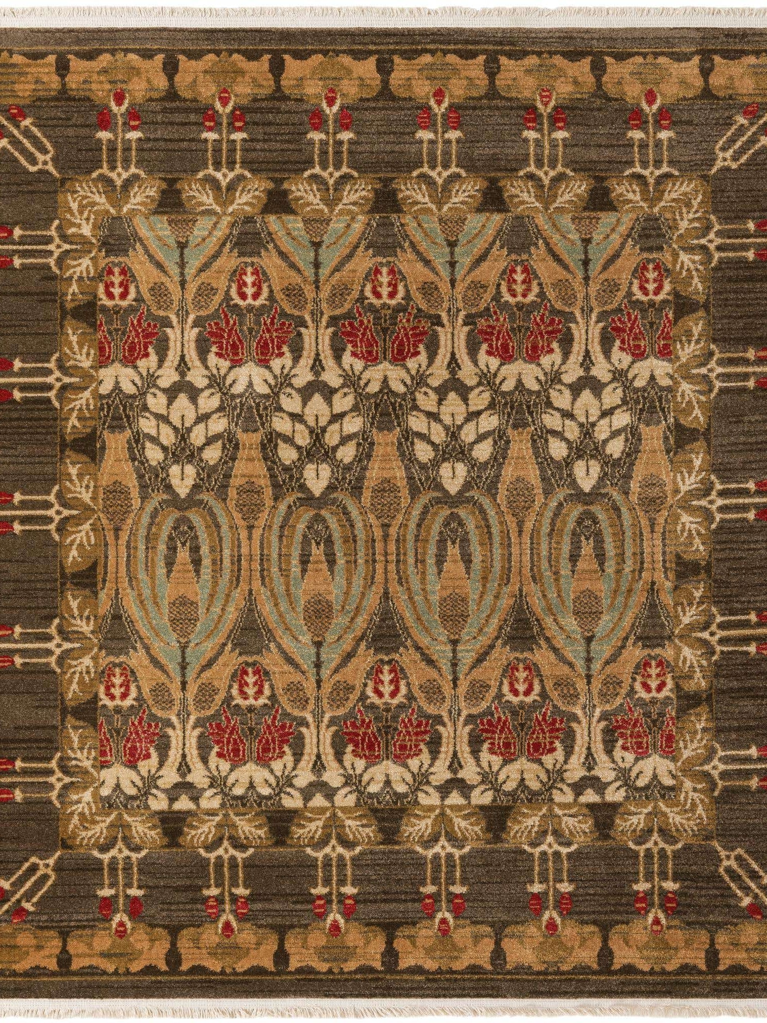 Brown 6' 1 x 6' 1 Edinburgh Square Area Rug 100% Polypropylene Easy Clean With Cotton Backing Traditional Classic Design Carpet for Living, Dining Room, Office