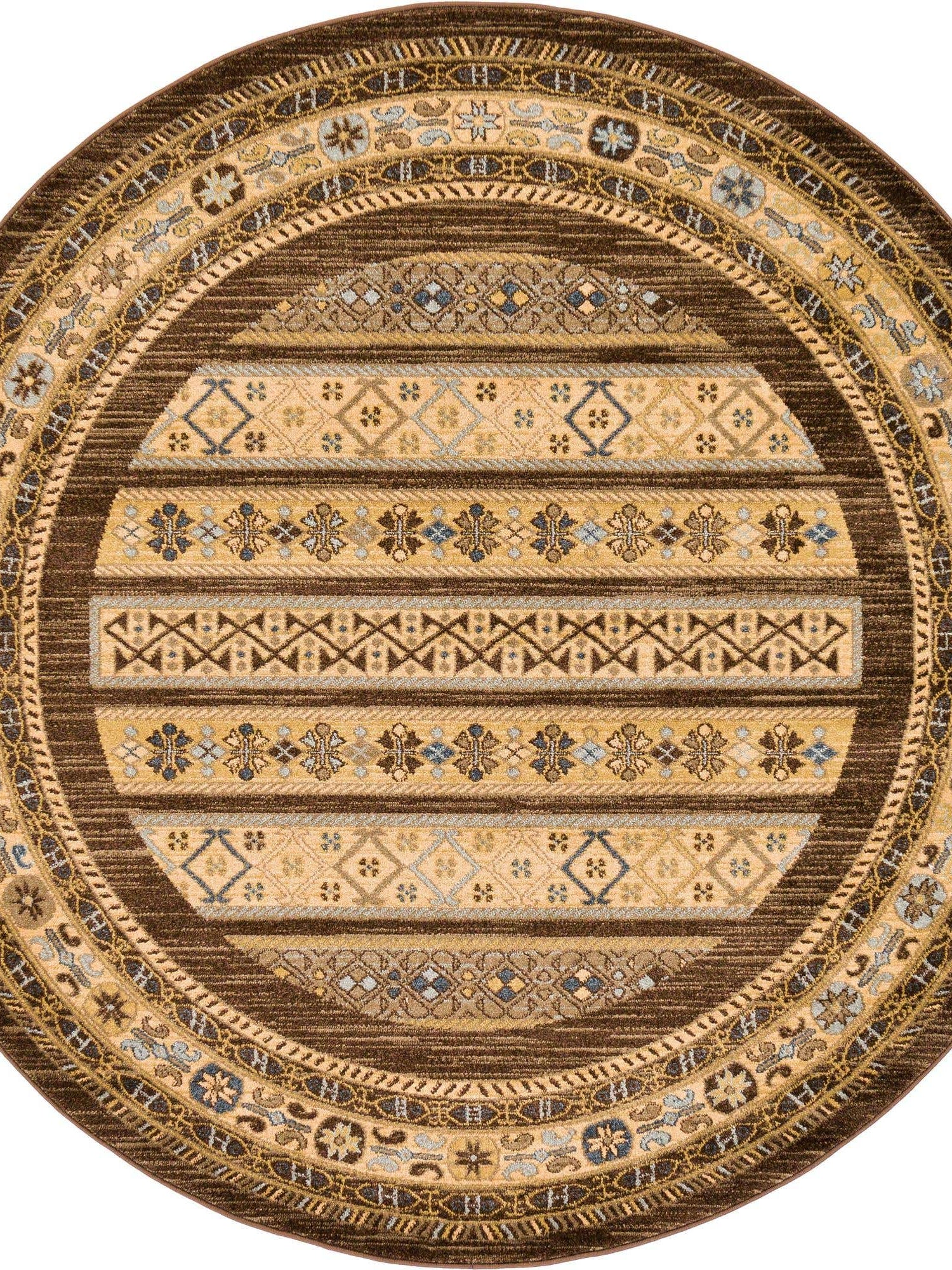 Brown 6' 1 x 6' 1 Fars Round Area Rug 100% Polypropylene Un...