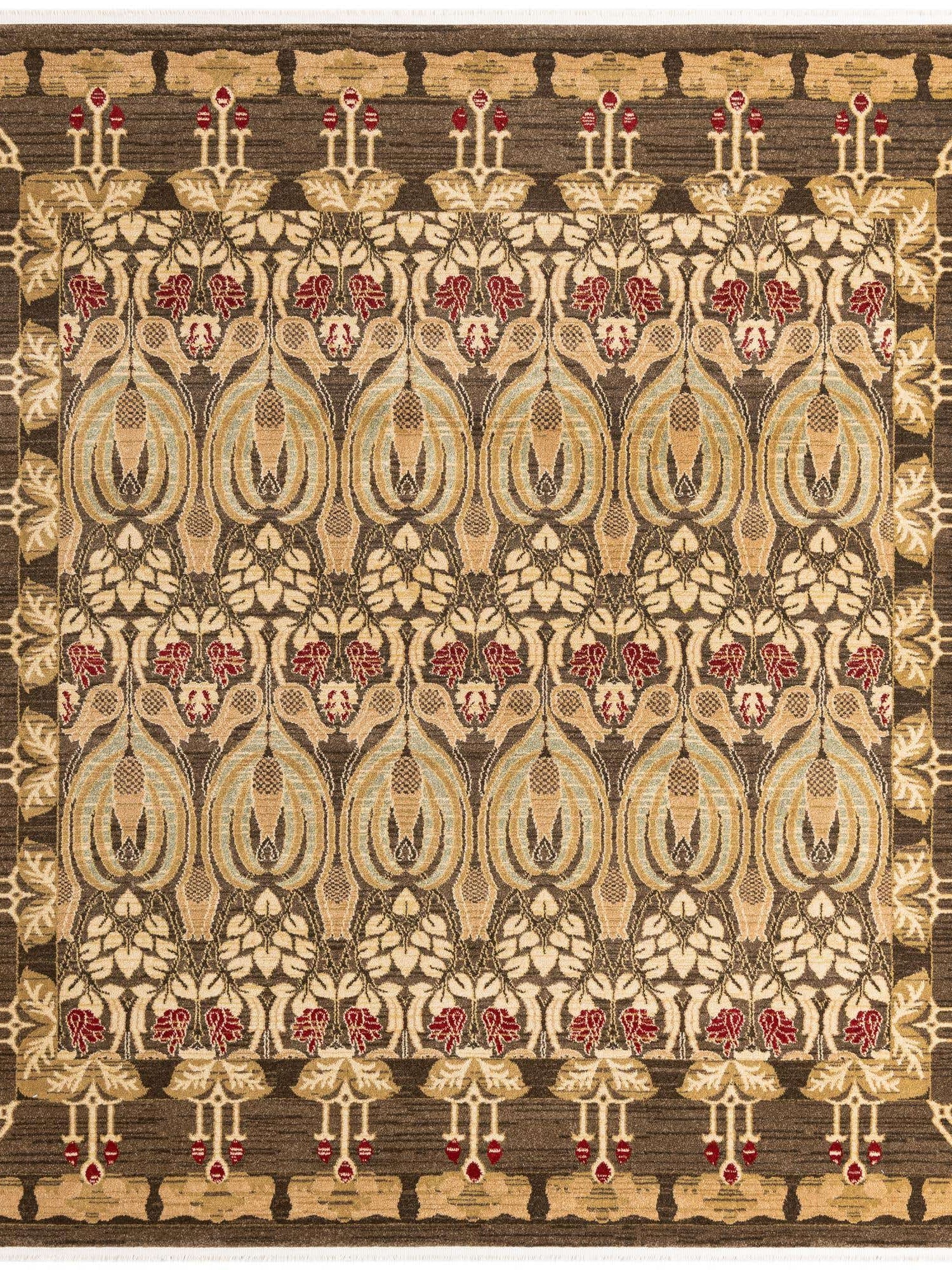 Brown 8' x 8' Edinburgh Square Area Rug 100% Polypropylene Easy Clean With Cotton Backing Traditional Classic Design Carpet for Living, Dining Room, Office