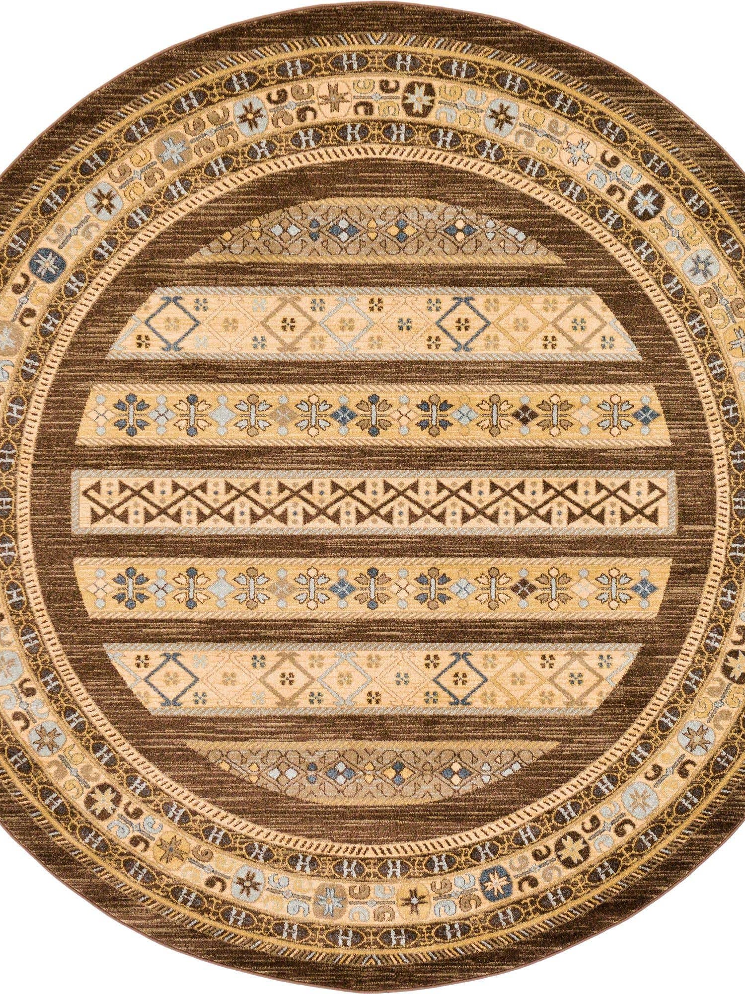Brown 8' x 8' Fars Round Area Rug 100% Polypropylene Unique...