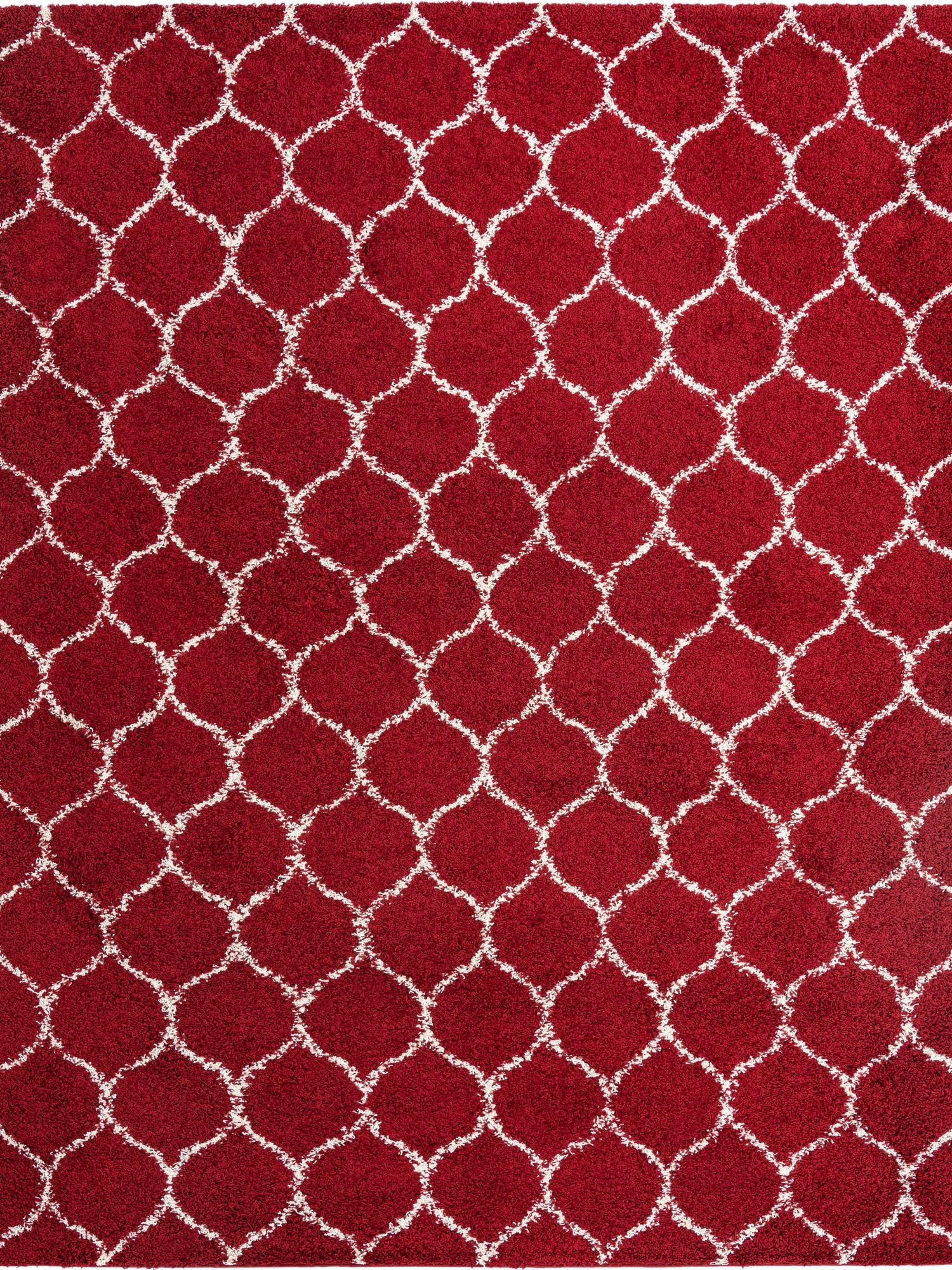 Burgundy Red 10' x 13' Trellis Shag Rectangle Area Rug Thick Soft Touch Fluffy & Plush Shaggy Pile