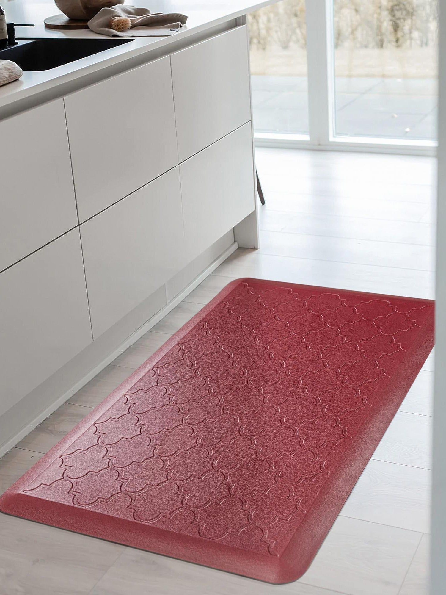 Anti-Fatigue Burgundy Red 2' x 3' Comfort Standing Mat for Kitchen, Bath, Laundry Room, Office Colorful PVC Durable Non-Slip Water Resistant Spill Proof Rug Thick Rubber