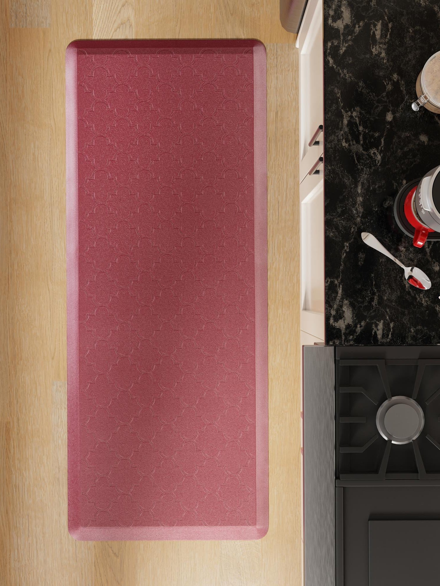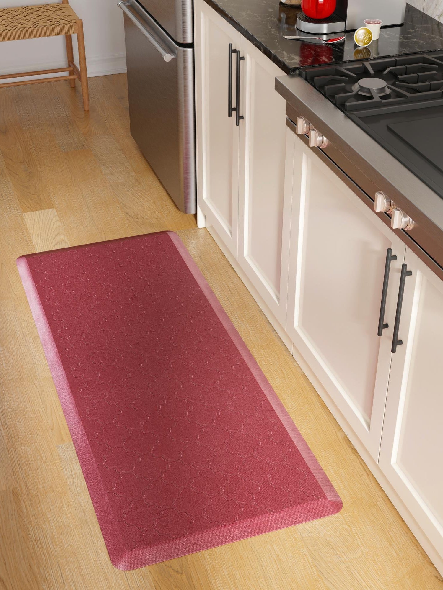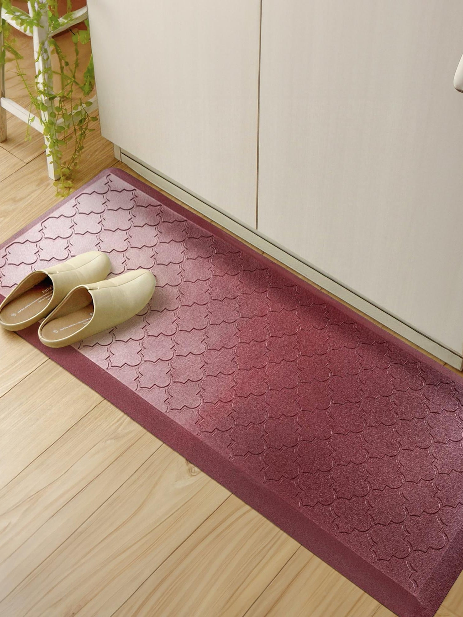 Anti-Fatigue Burgundy Red 2' x 5' Comfort Standing Mat for Kitchen, Bath, Laundry Room, Office Colorful PVC Durable Non-Slip Water Resistant Spill Proof Rug Thick Rubber