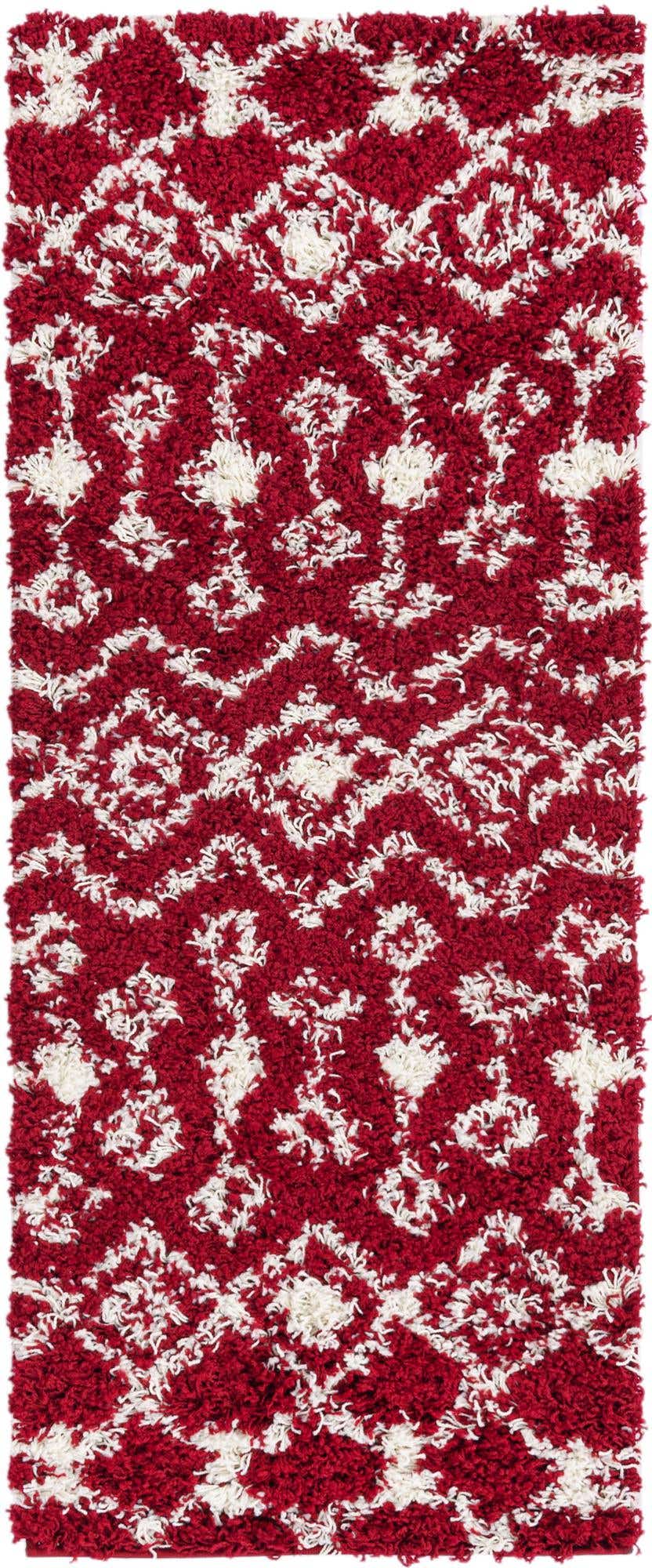 Burgundy Red 2' x 5' 1 Moroccan Trellis Shag Runner Area Ru...