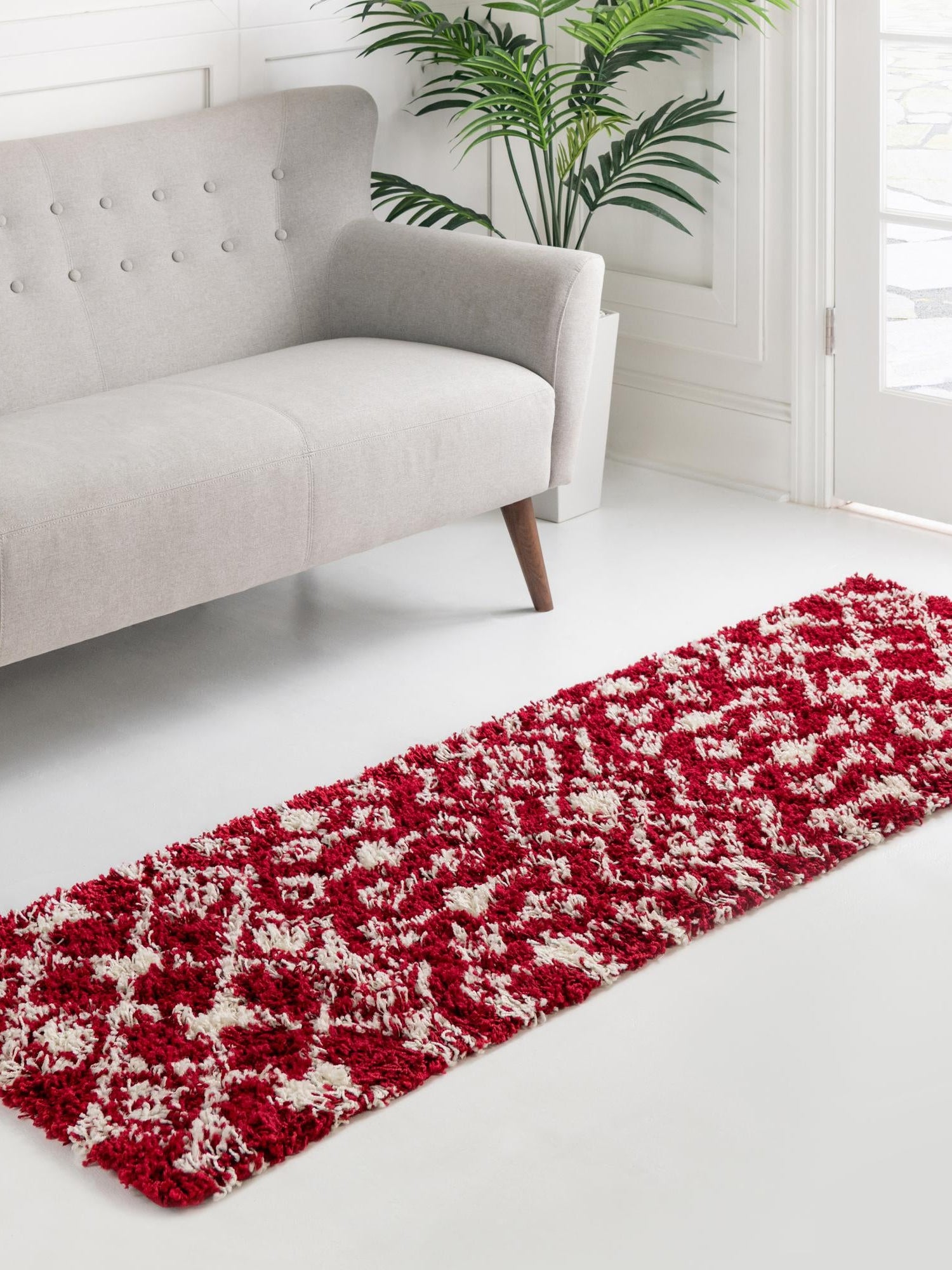Burgundy Red 3' 3 x 16' 5 Moroccan Trellis Shag Runner Area...