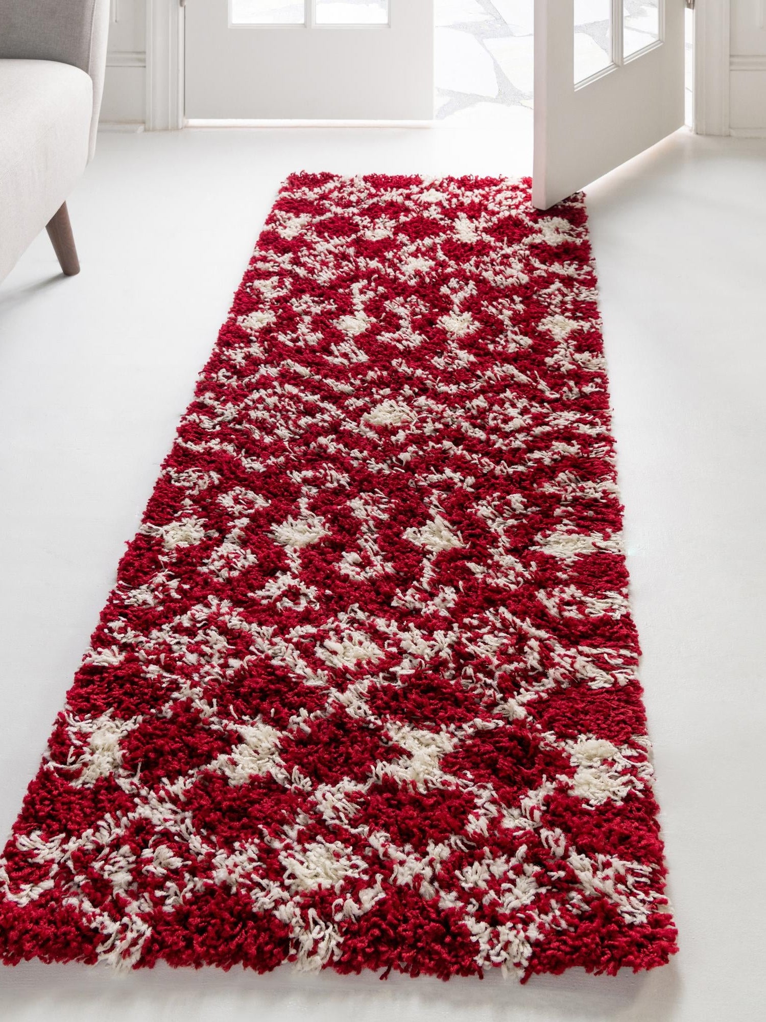 Burgundy Red 3' 3 x 16' 5 Moroccan Trellis Shag Runner Area Rug Thick Soft Touch Fluffy & Plush Shaggy Pile
