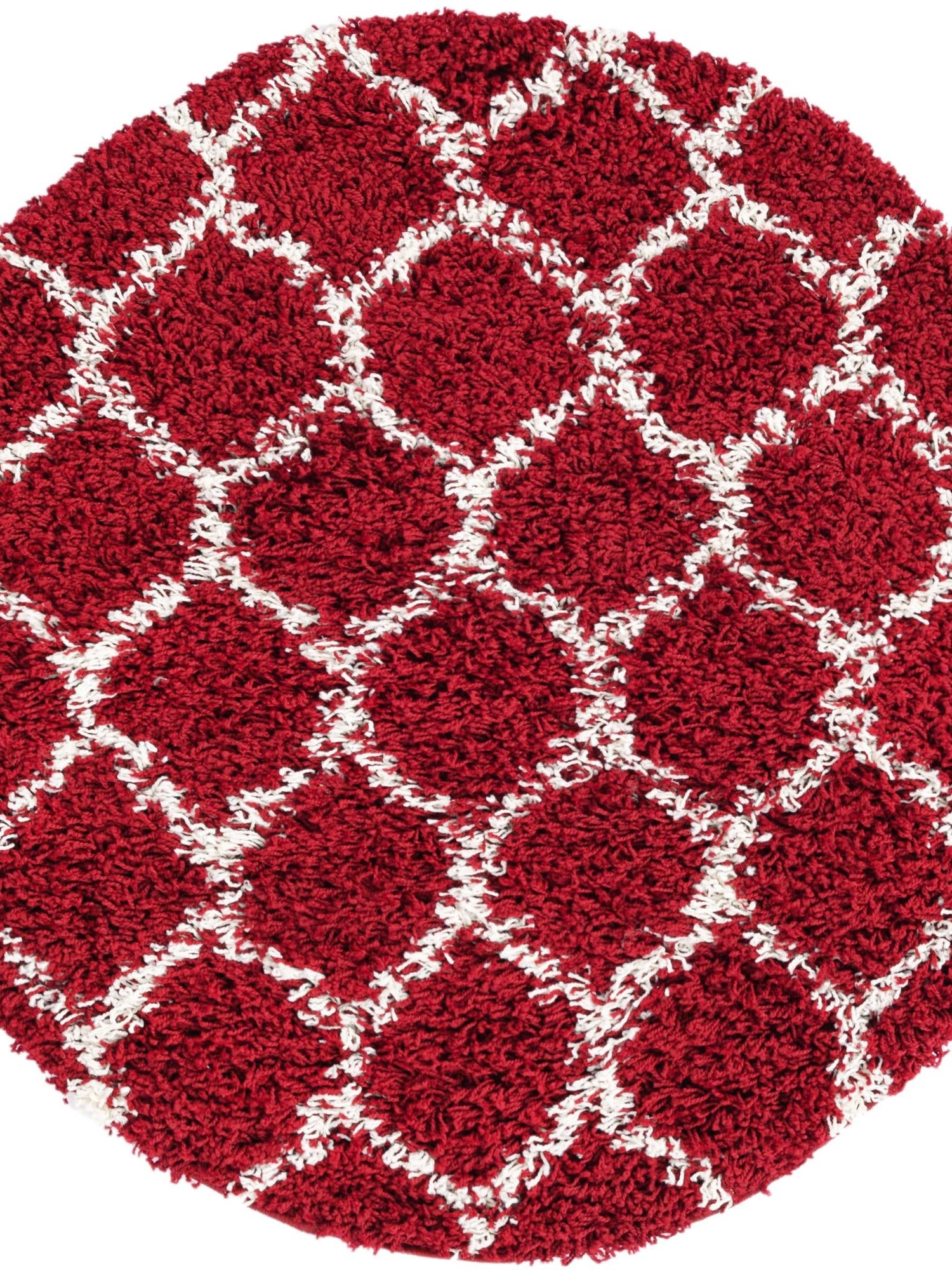 Burgundy Red 3' 3 x 3' 3 Trellis Shag Round Area Rug Thick ...