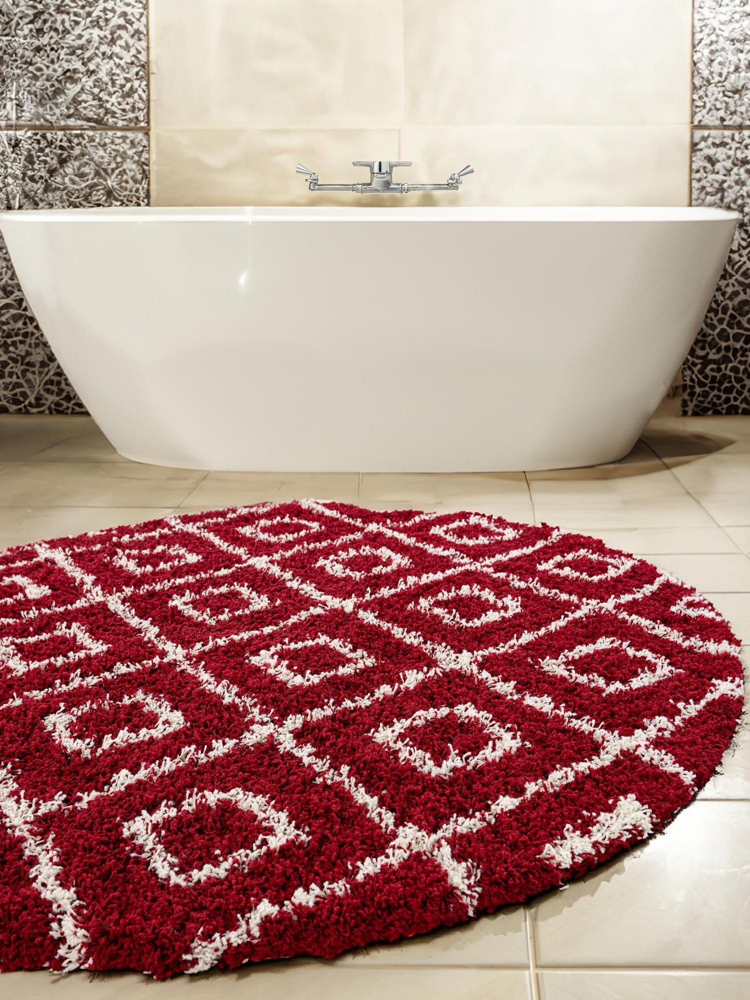 Burgundy Red 3' 3 x 3' 3 Trellis Shag Round Area Rug Thick ...