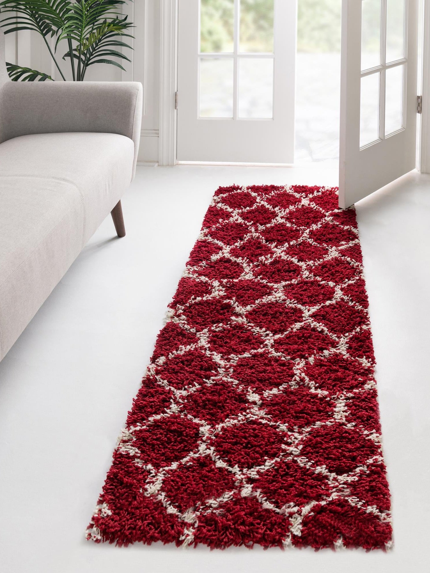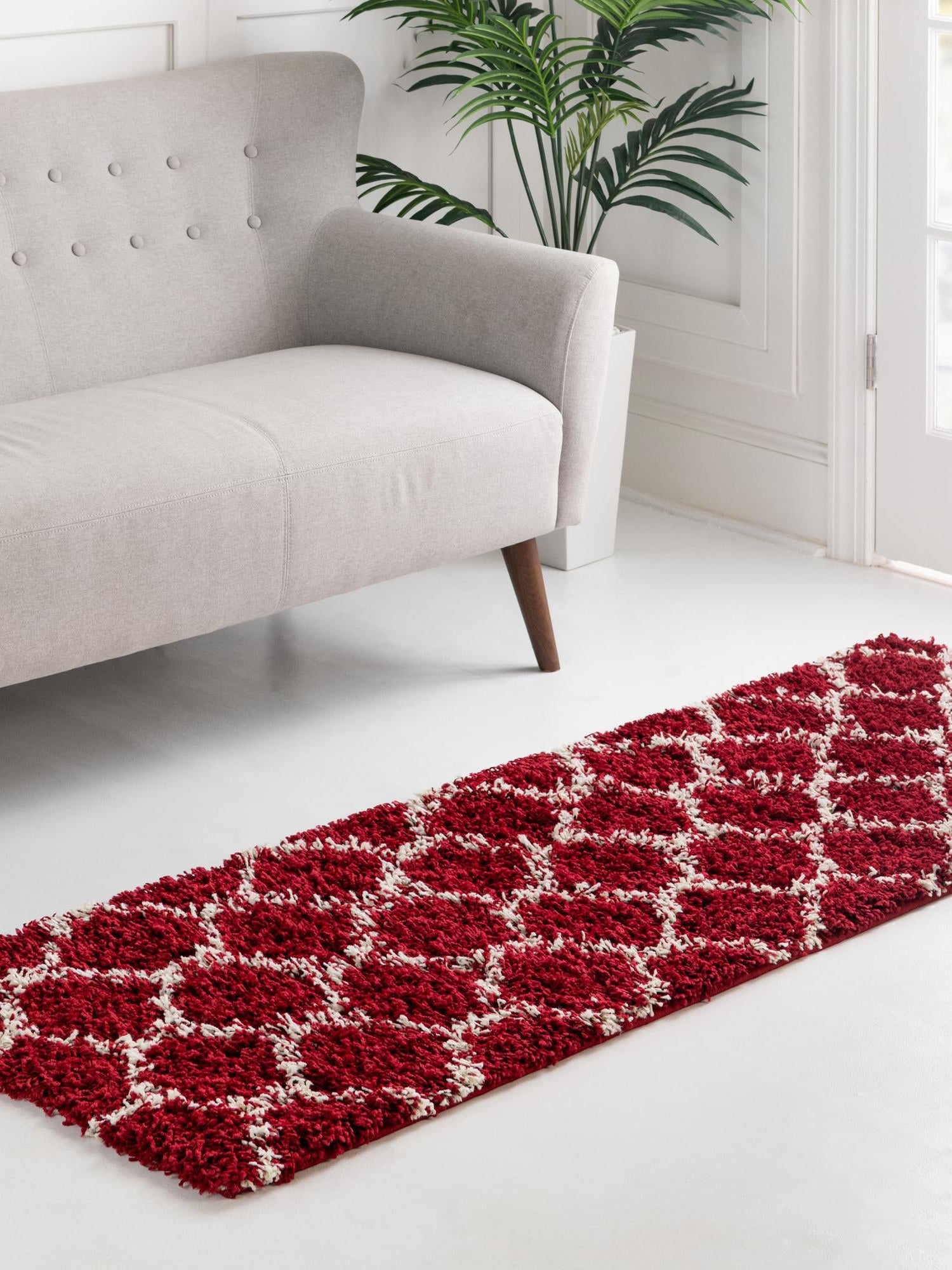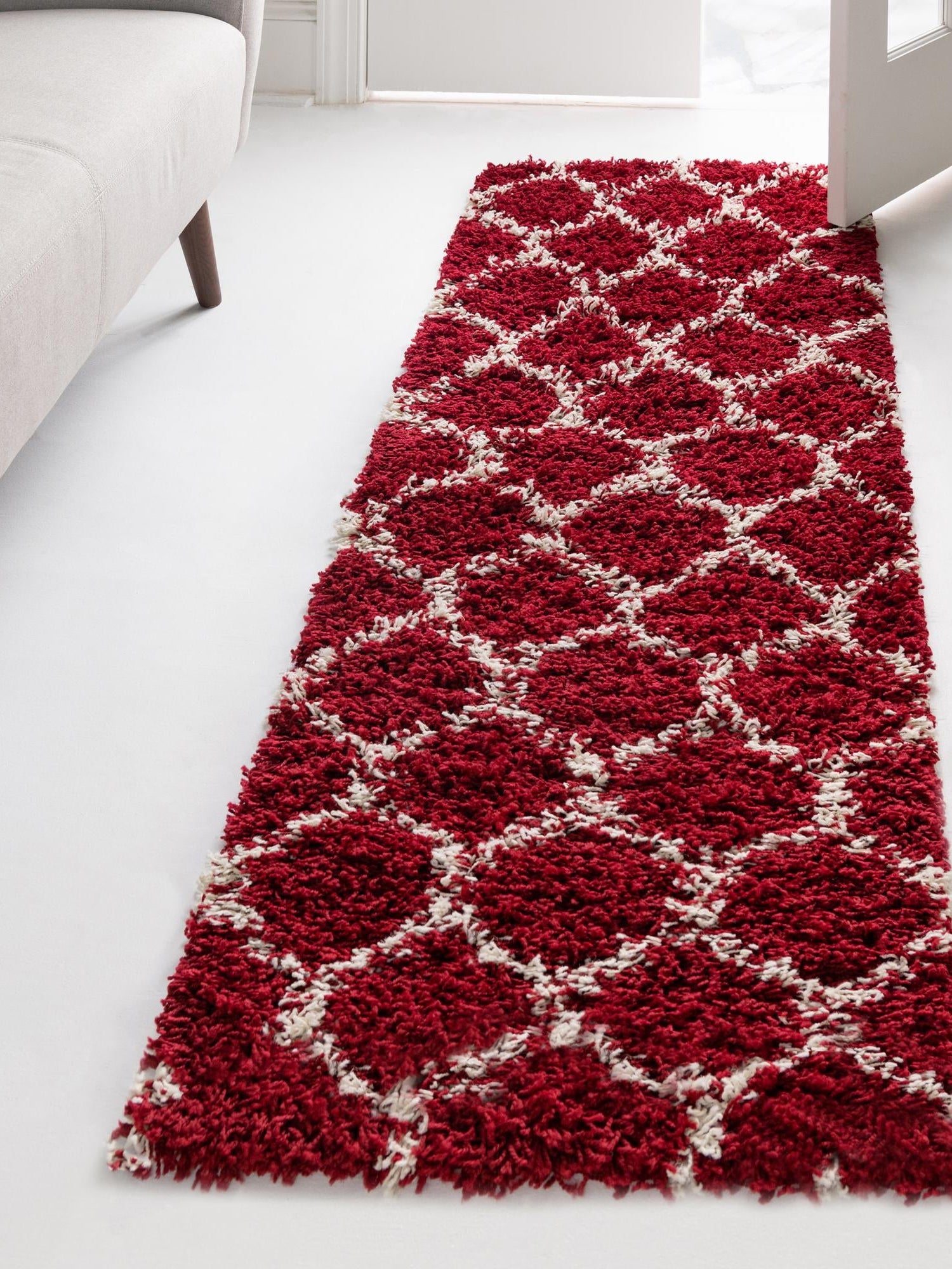Burgundy Red 2' 7 x 10' Trellis Shag Runner Area Rug Thick ...