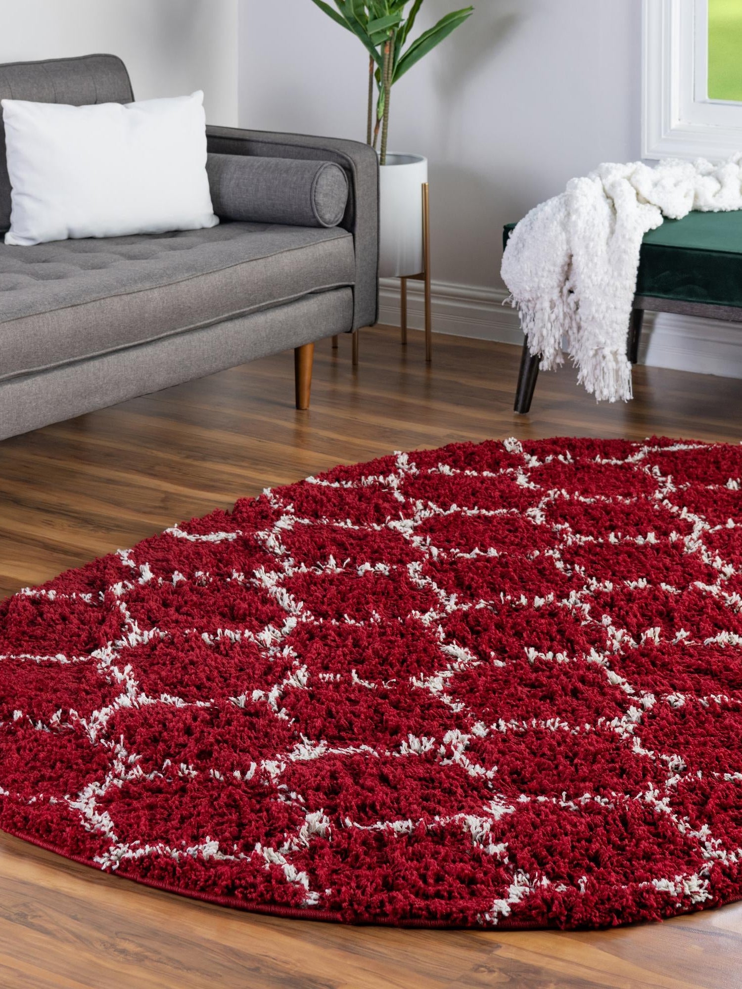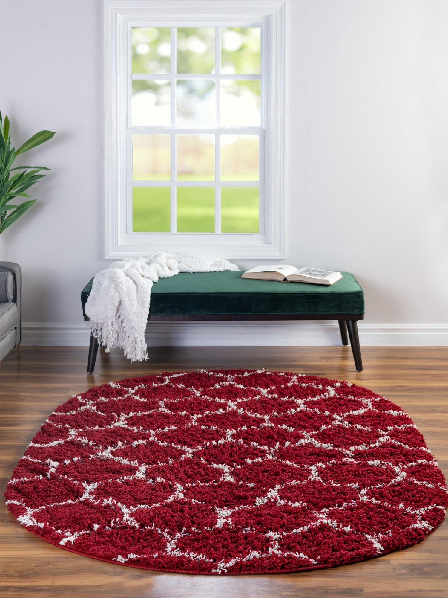Burgundy Red 4' x 6' Trellis Shag Oval Area Rug Thick Soft Touch Fluffy & Plush Shaggy Pile