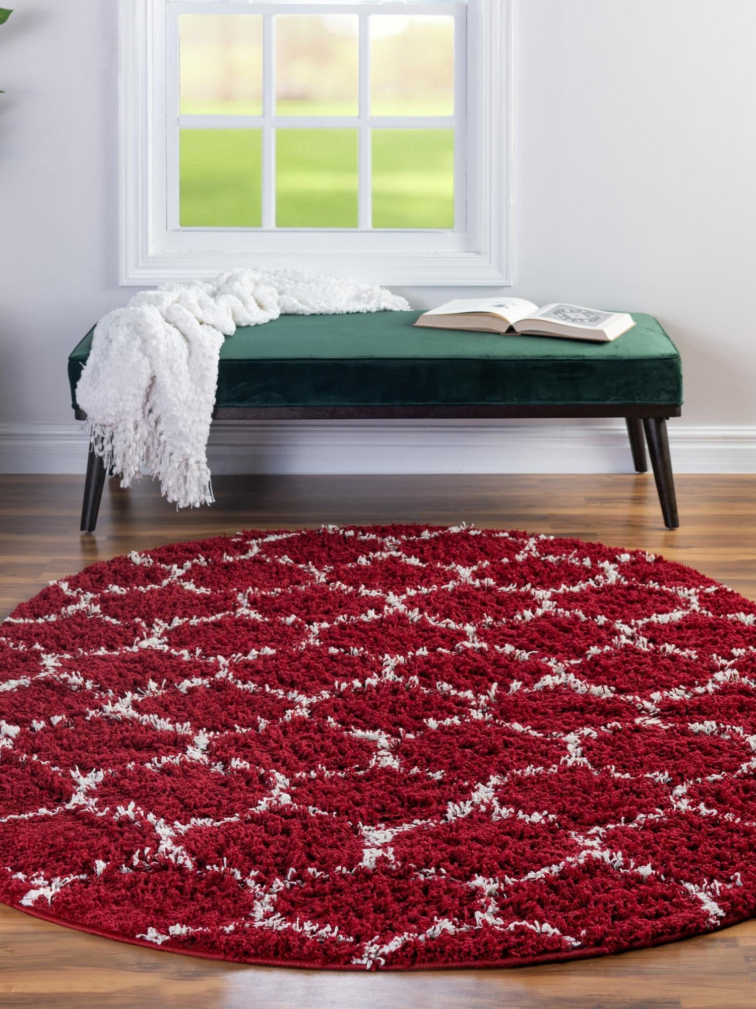 Washable Burgundy Red 5' 1 x 5' 1 Timeless Round Area Rug Easy to Clean Stain Resistant & Durable