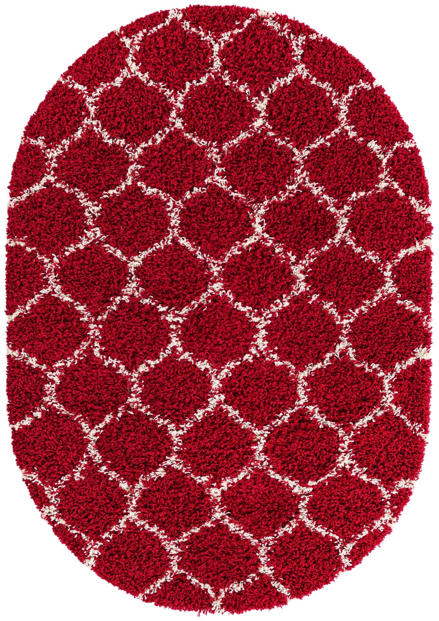 Burgundy Red 4' x 6' Trellis Shag Oval Area Rug Thick Soft ...
