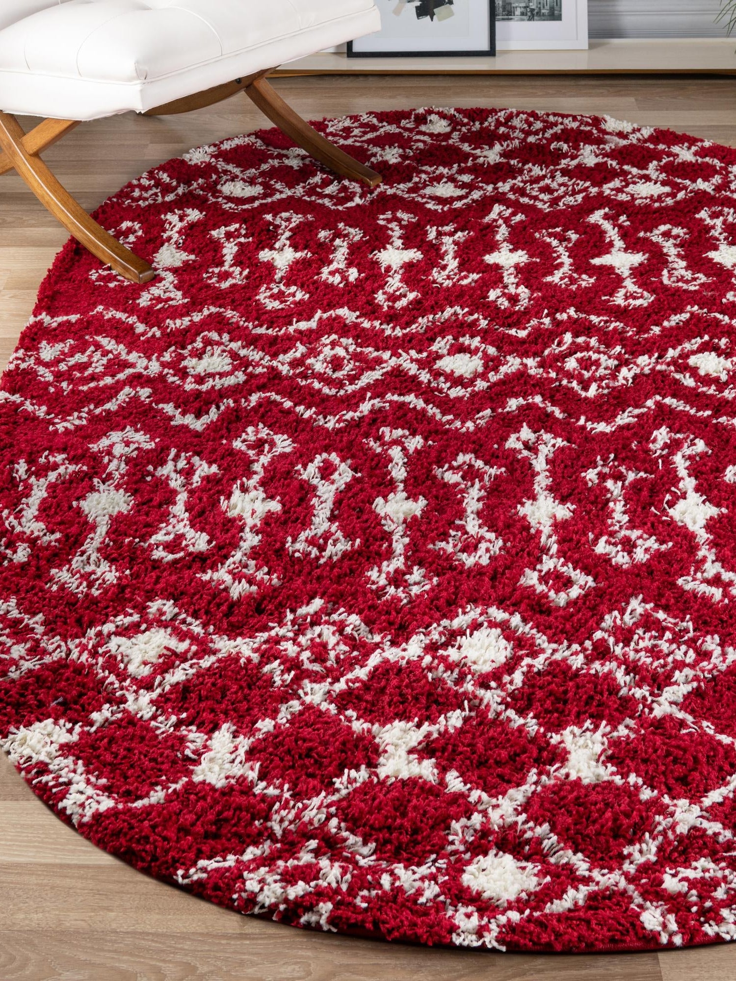 Burgundy Red 5' 3 x 8' Moroccan Trellis Shag Oval Area Rug Thick Soft Touch Fluffy & Plush Shaggy Pile