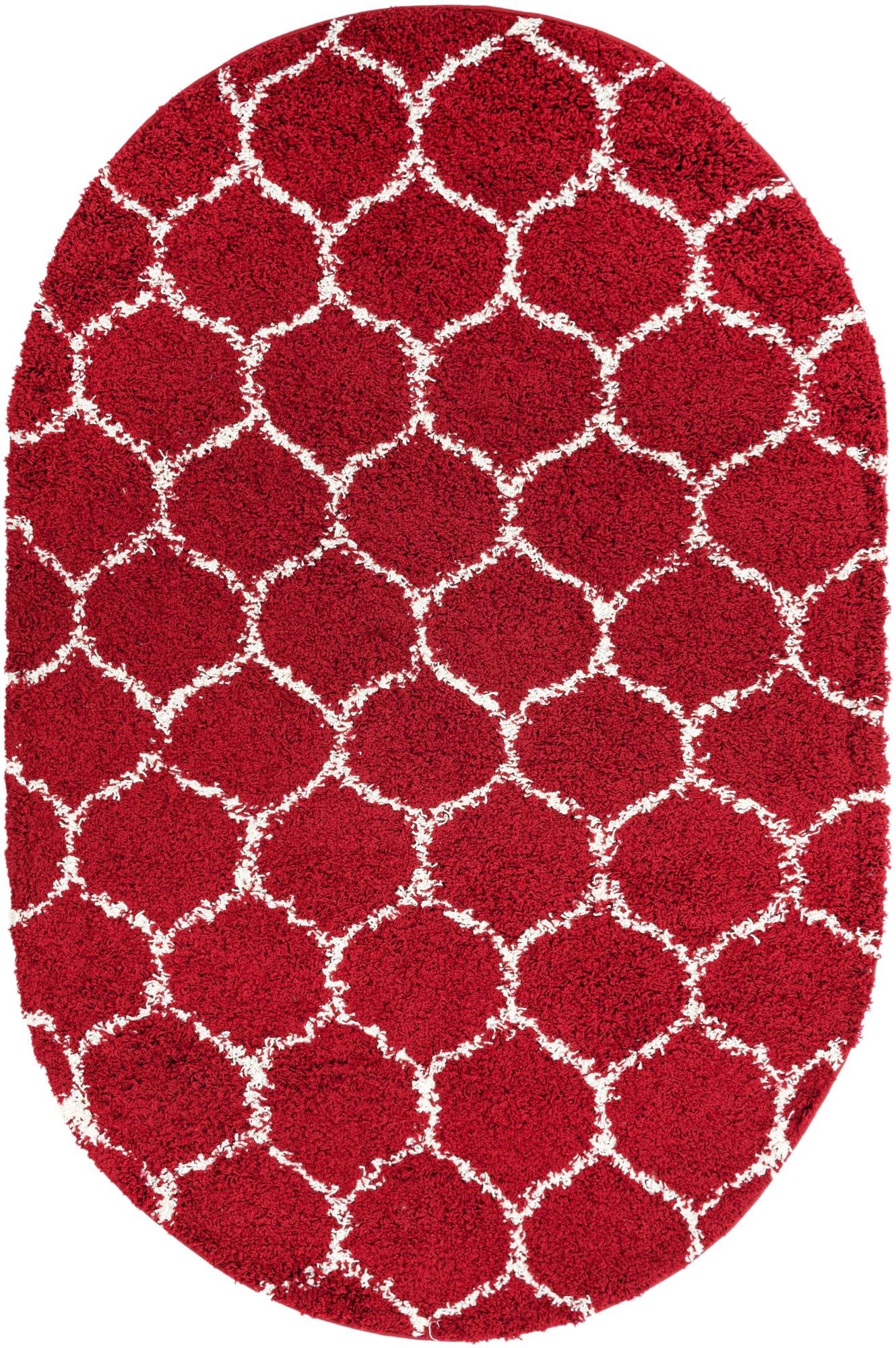 Burgundy Red 5' 3 x 8' Trellis Shag Oval Area Rug Thick Soft Touch Fluffy & Plush Shaggy Pile