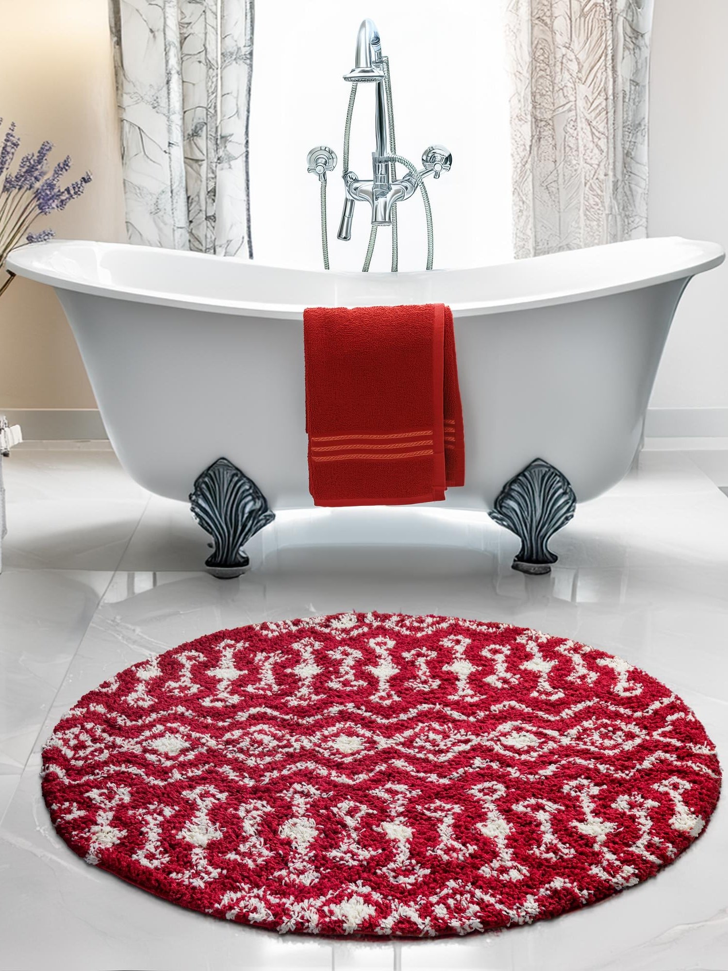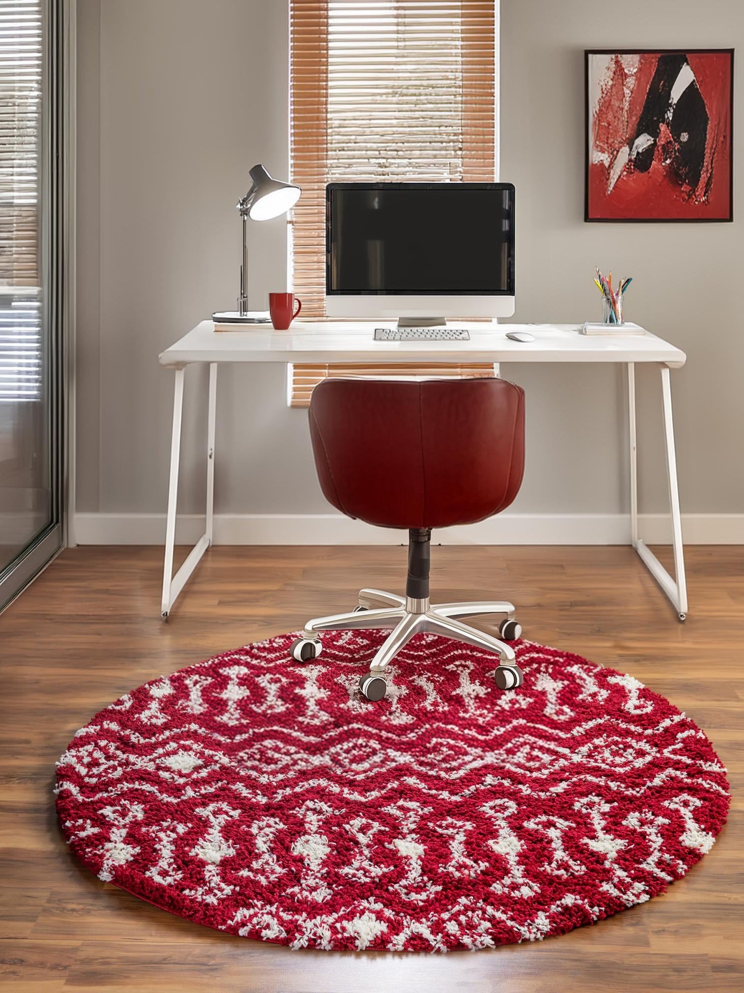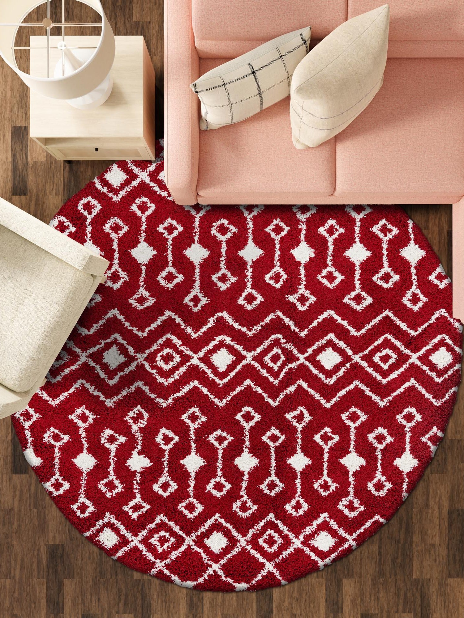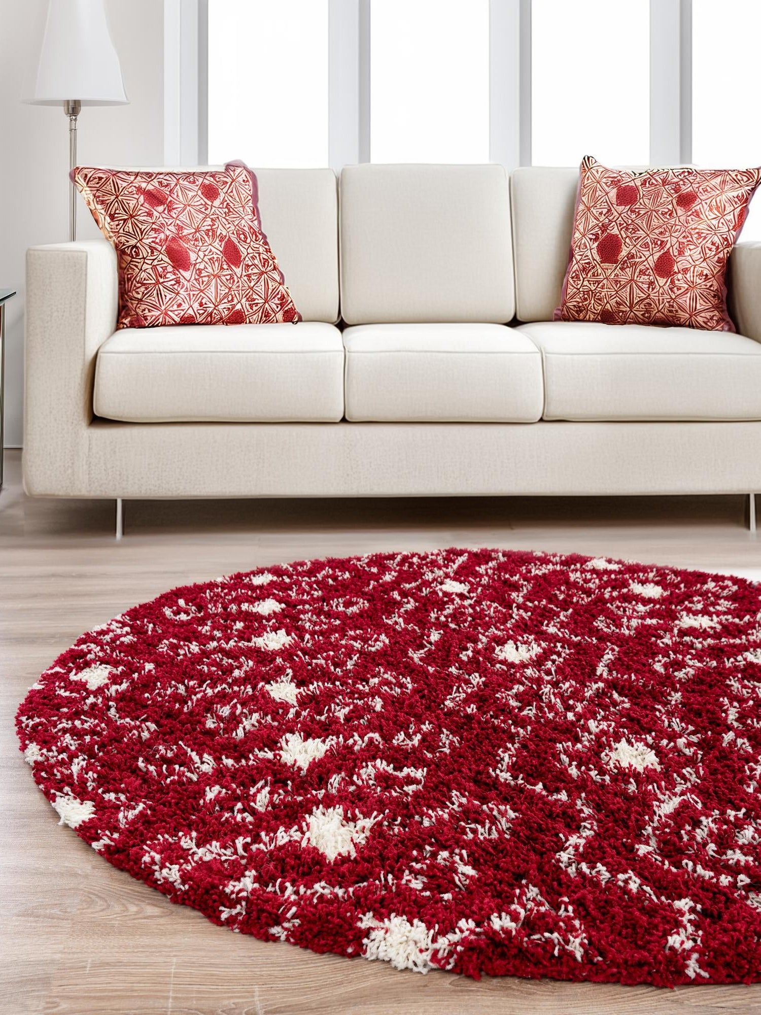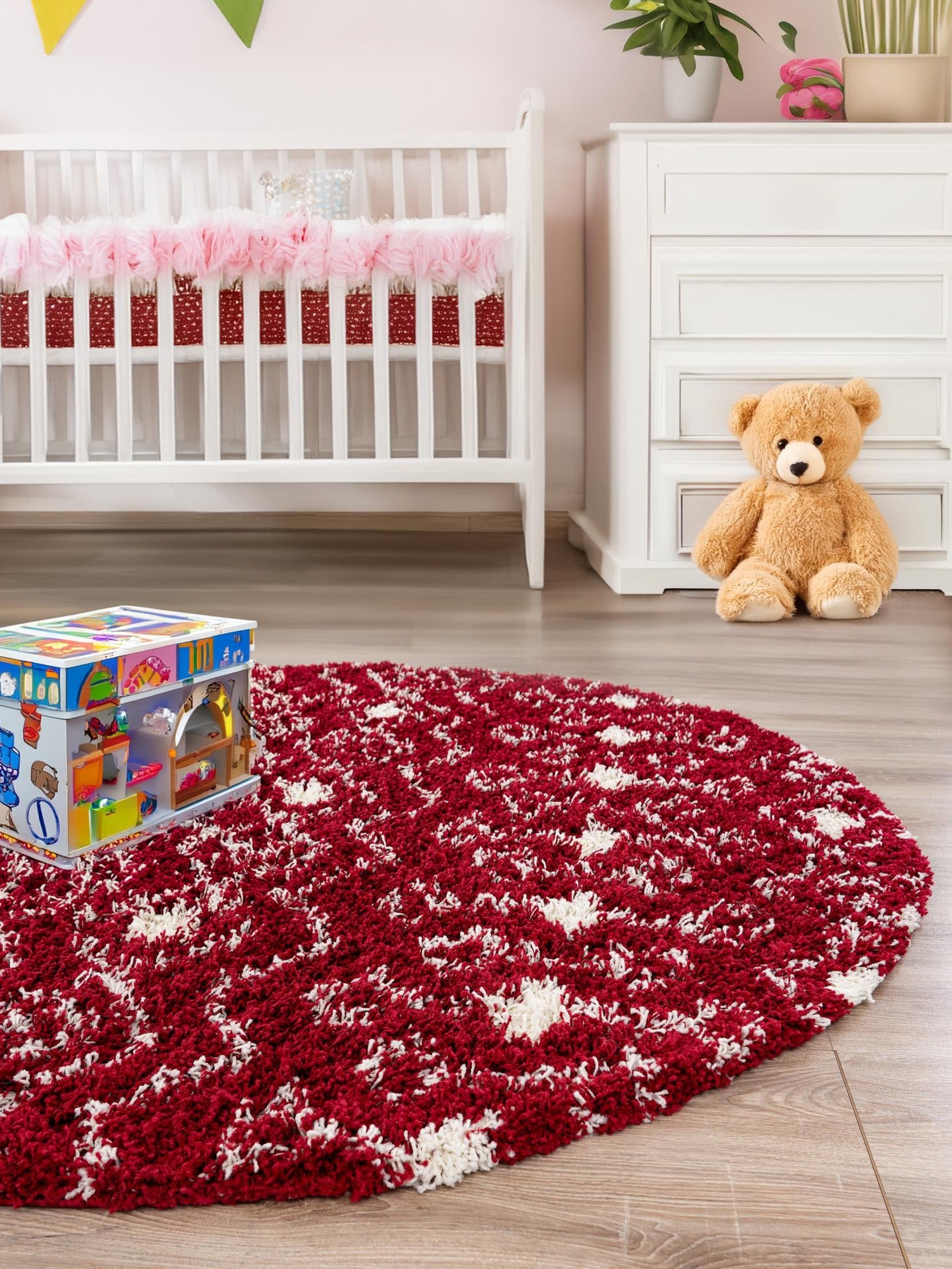 Burgundy Red 6' 1 x 6' 1 Moroccan Trellis Shag Round Area Rug Thick Soft Touch Fluffy & Plush Shaggy Pile