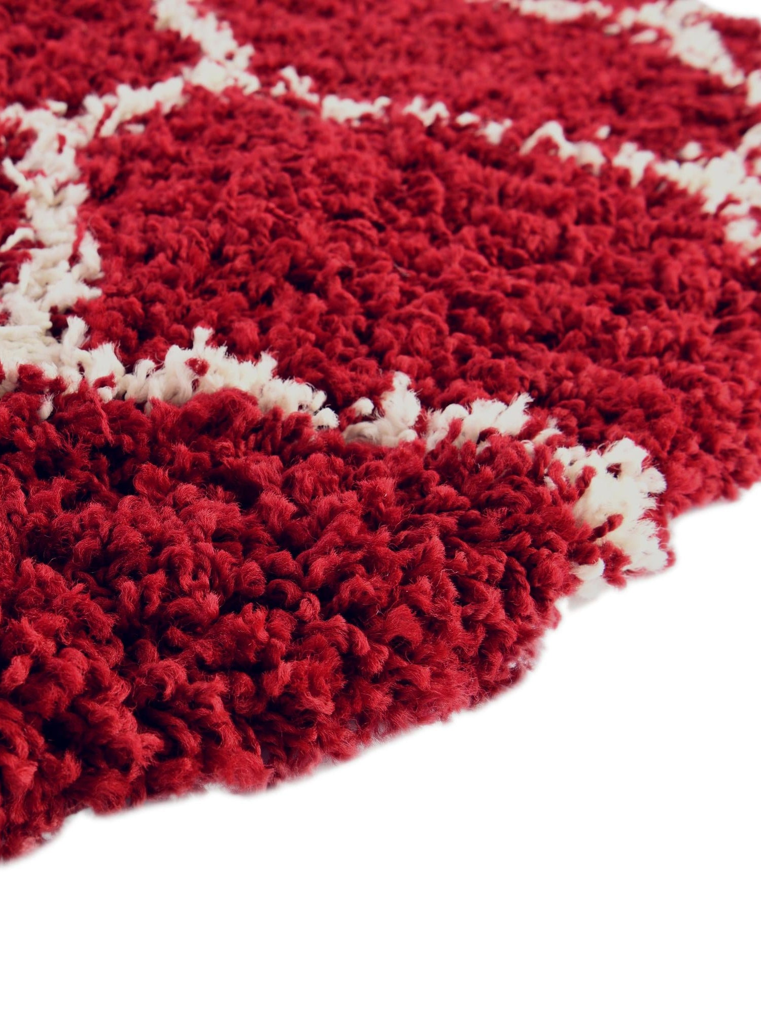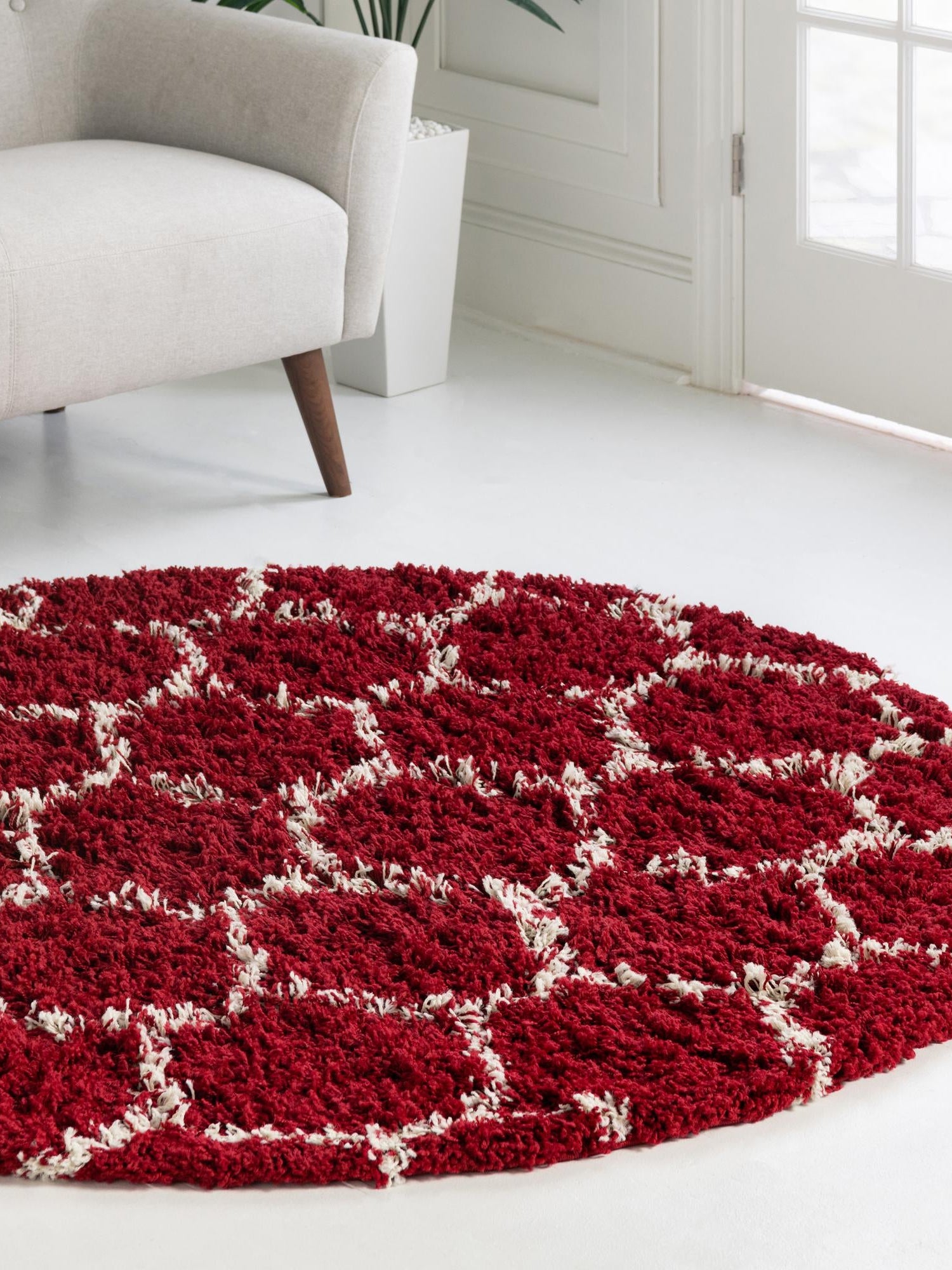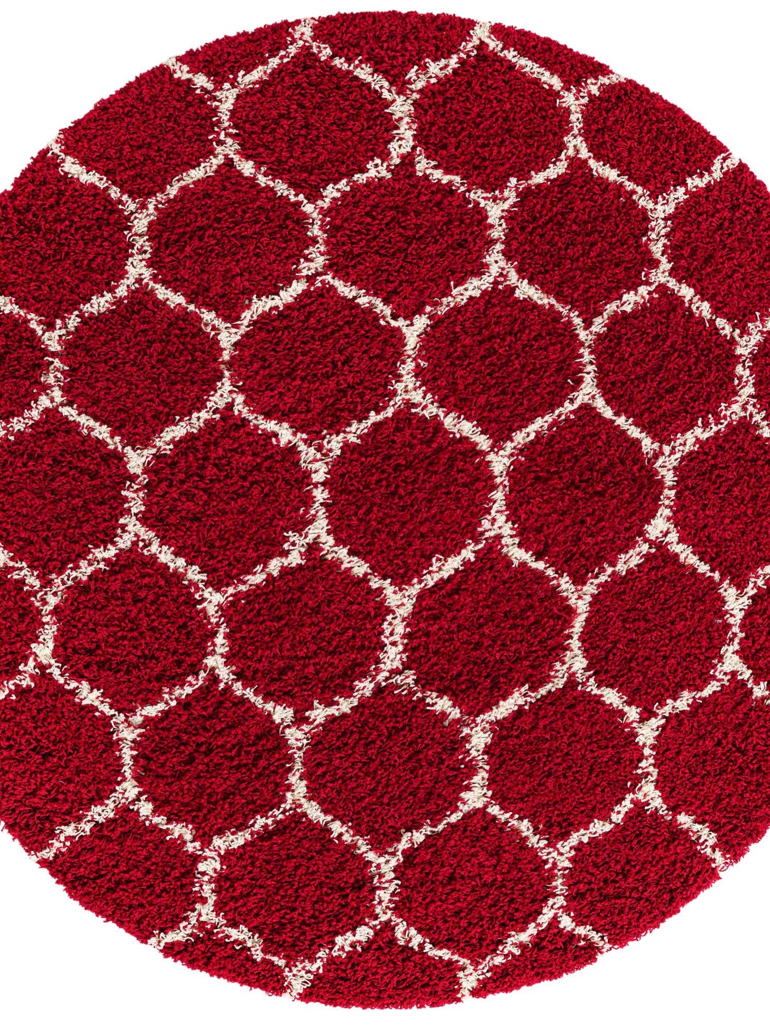 Burgundy Red 6' x 6' Trellis Shag Round Area Rug Thick Soft Touch Fluffy & Plush Shaggy Pile