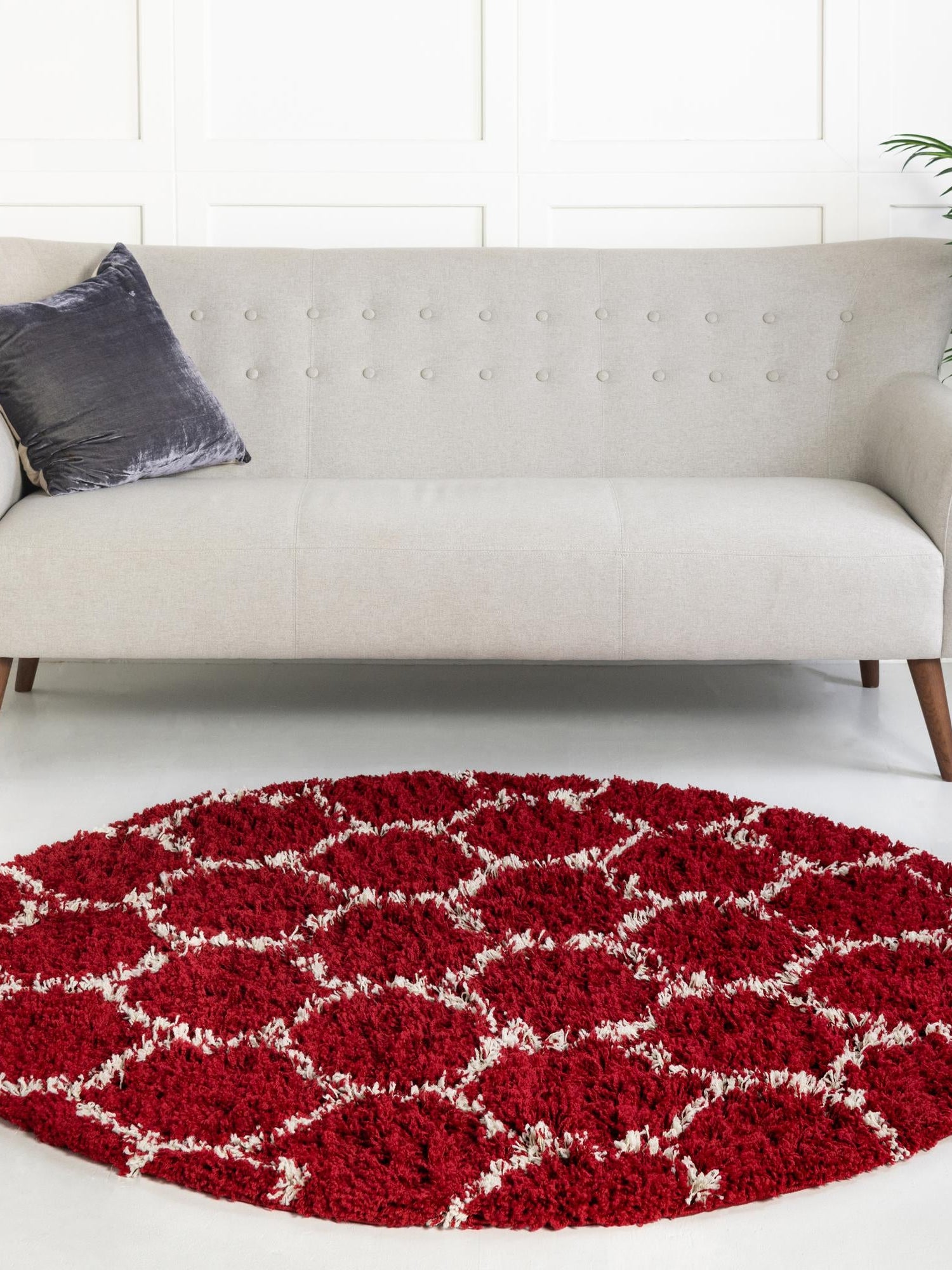 Burgundy Red 6' x 6' Trellis Shag Round Area Rug Thick Soft...