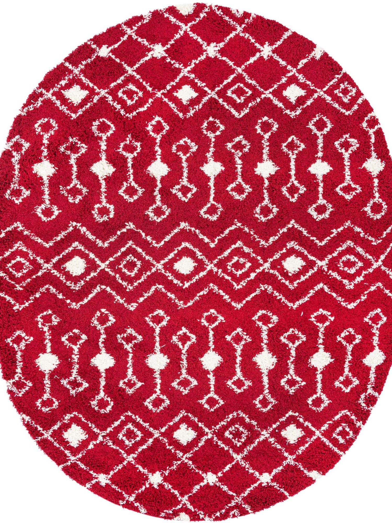 Burgundy Red 7' 10 x 10' Moroccan Trellis Shag Oval Area Rug Thick Soft Touch Fluffy & Plush Shaggy Pile