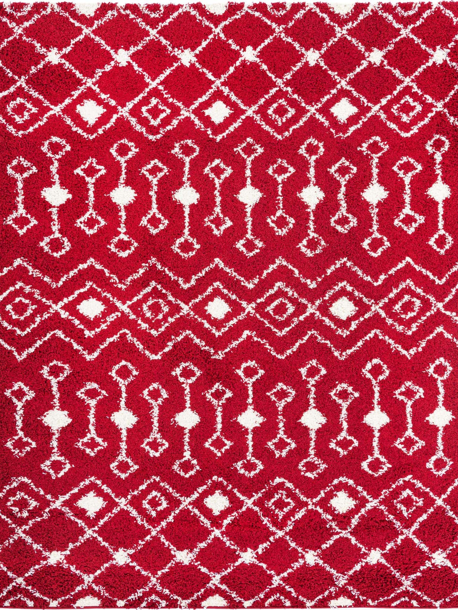 Burgundy Red 7' 10 x 10' Moroccan Trellis Shag Rectangle Ar...