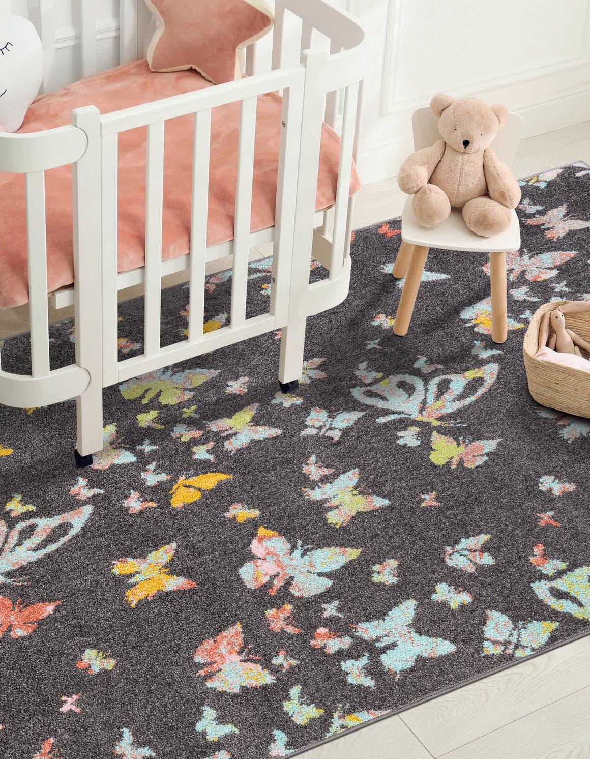 Charcoal Gray 2' 2 x 3' 1 Whimsy Kids Rectangle Area Rug for Baby Nursery, Toddler Playroom, Bedrooms