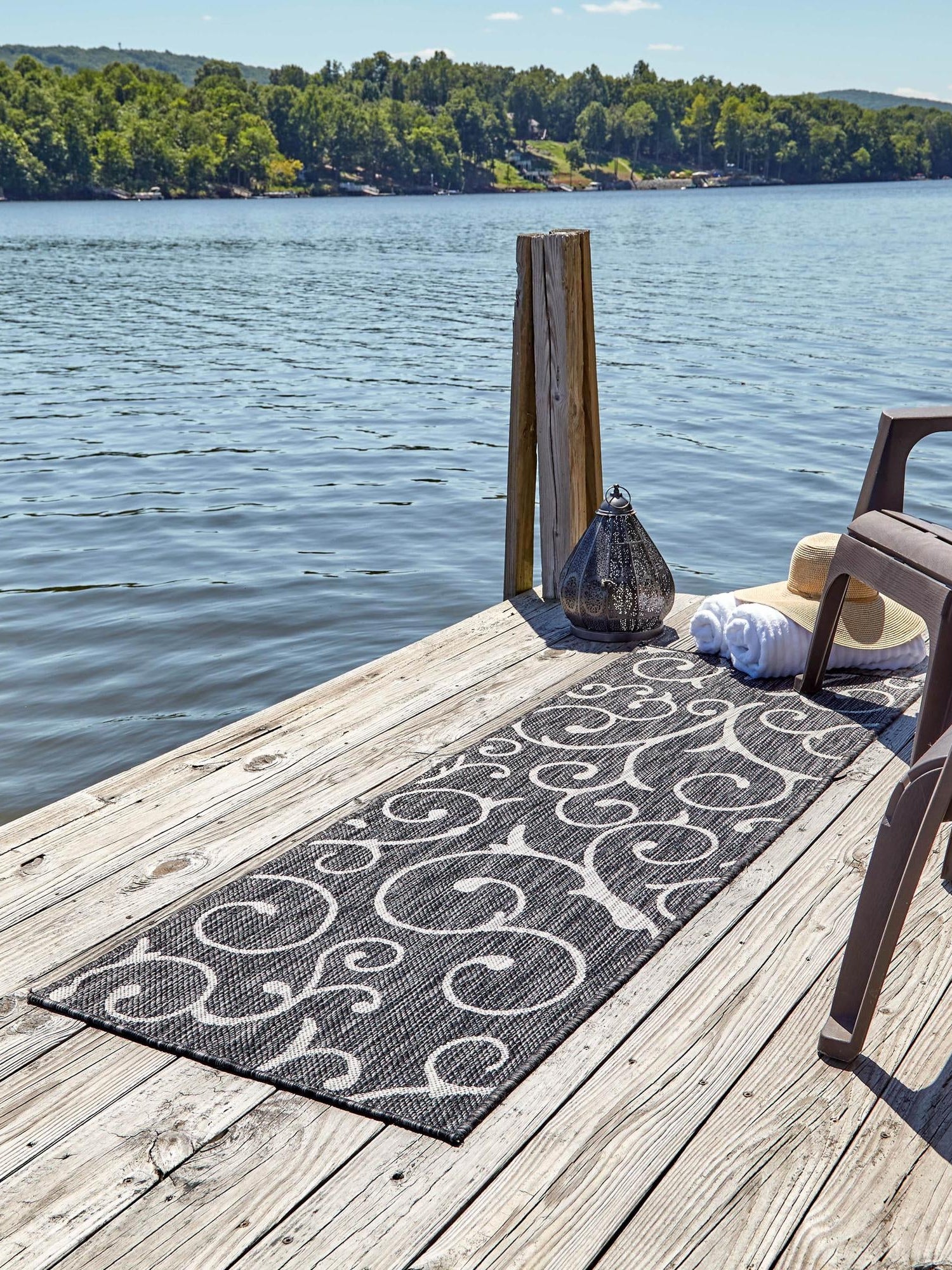 Charcoal Gray 2' x 6' 1 Outdoor Botanical Runner Area Rug Weather Resistant for Patio, Deck, Terrace, Balcony, Porch