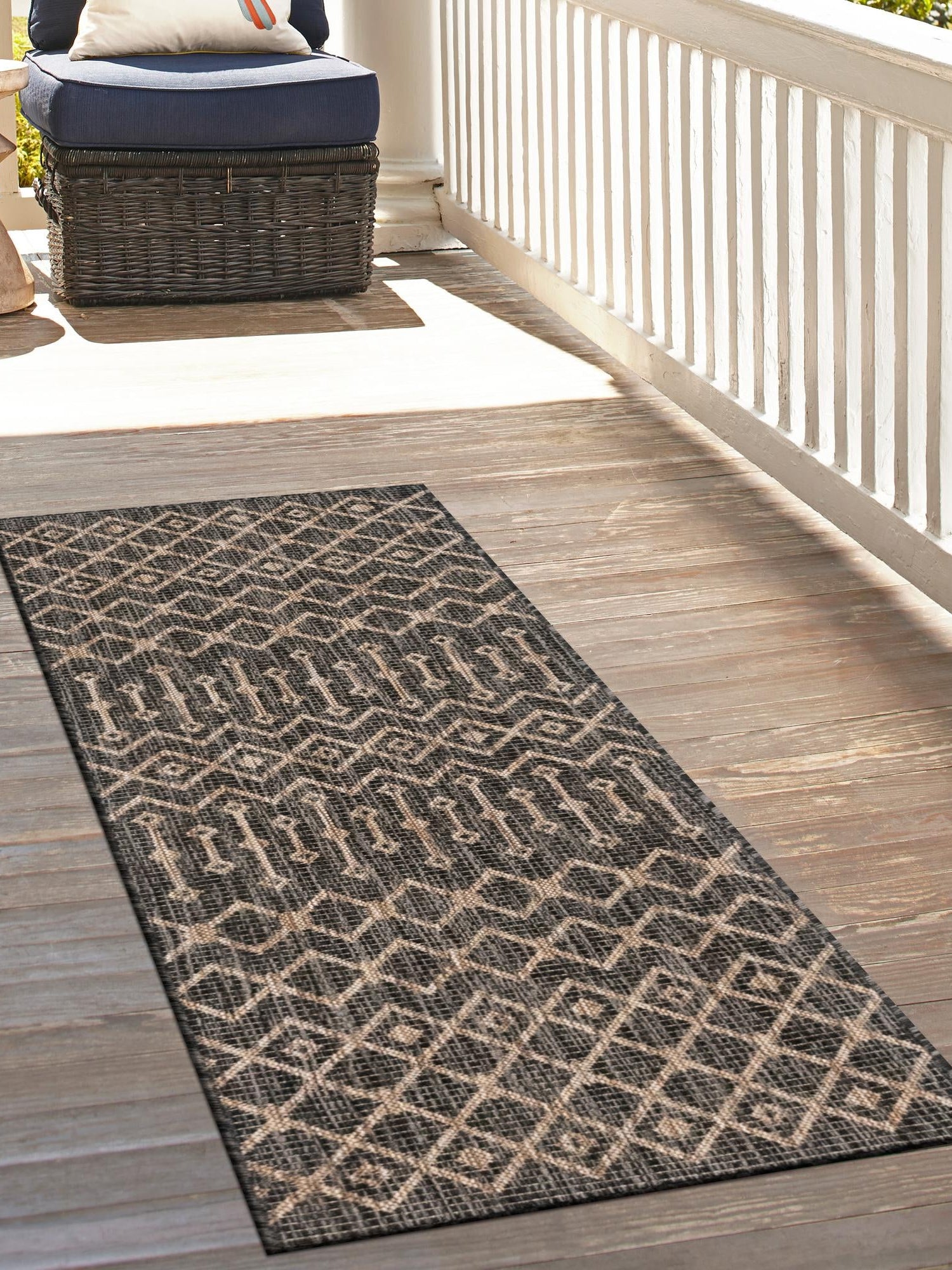 Charcoal Gray 2' x 6' 1 Outdoor Trellis Runner Area Rug Wea...