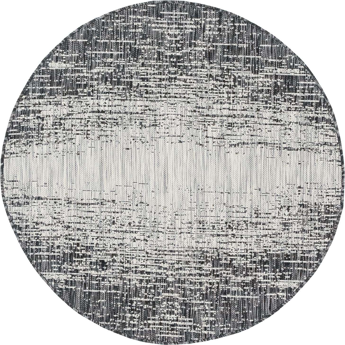 Charcoal Gray 4' 1 x 4' 1 Outdoor Modern Round Area Rug Weather Resistant for Patio, Deck, Terrace, Balcony, Porch