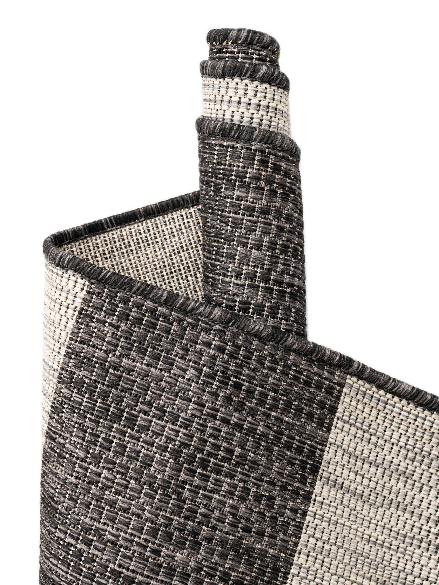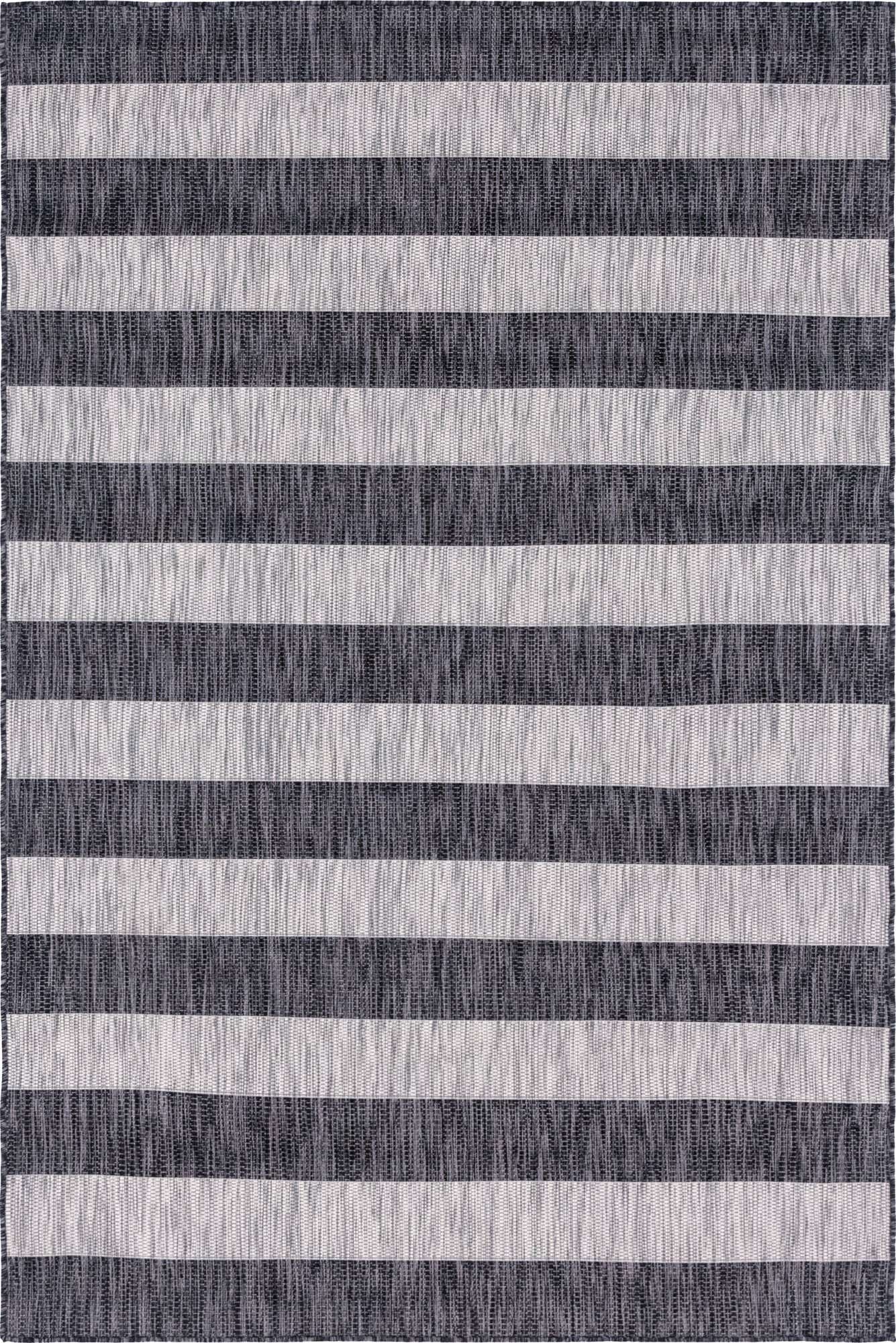 Charcoal Gray 6' 1 x 9' Outdoor Striped Rectangle Area Rug Weather Resistant for Patio, Deck, Terrace, Balcony, Porch