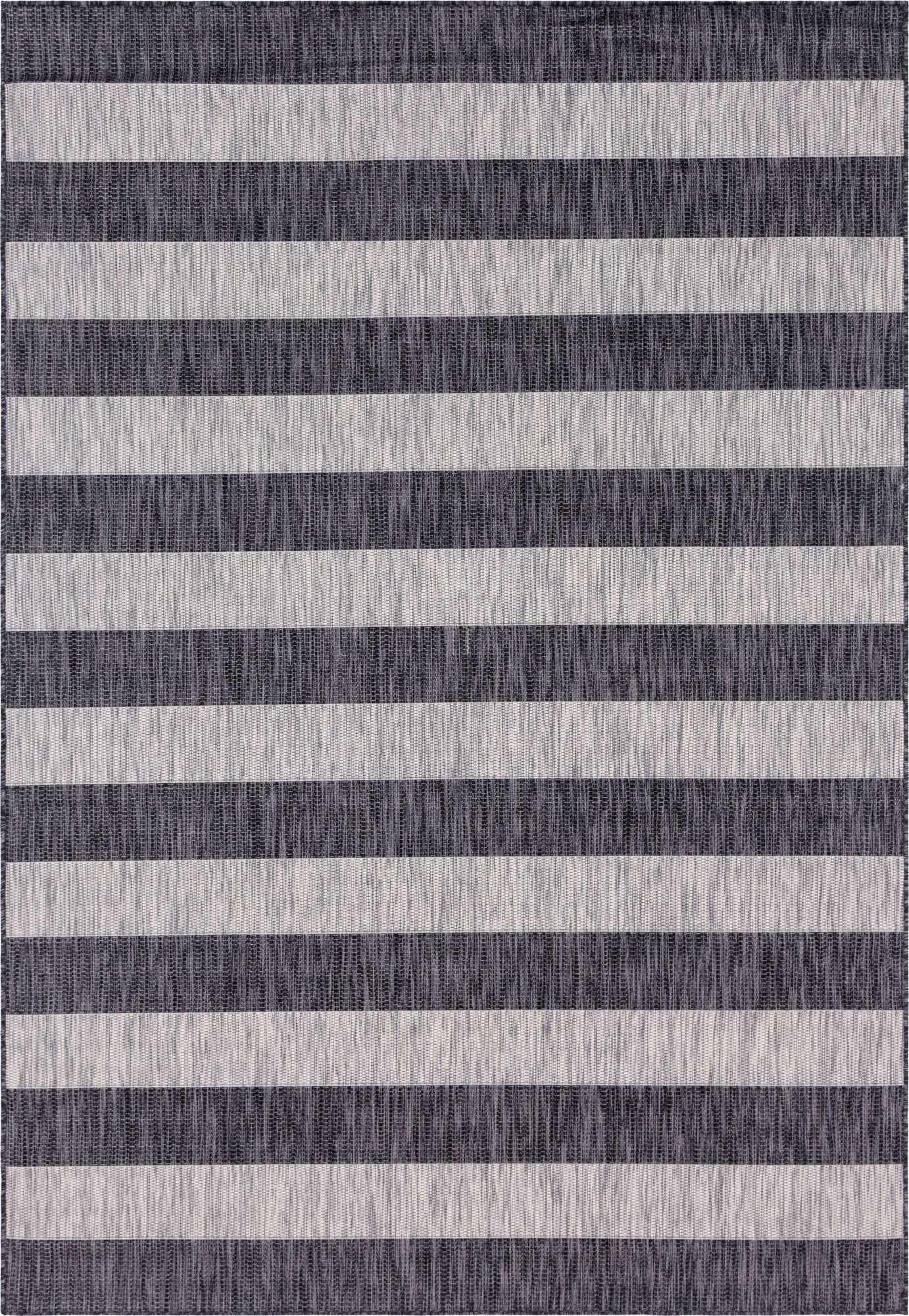 Charcoal Gray 7' 1 x 10' Outdoor Striped Rectangle Area Rug Weather Resistant for Patio, Deck, Terrace, Balcony, Porch