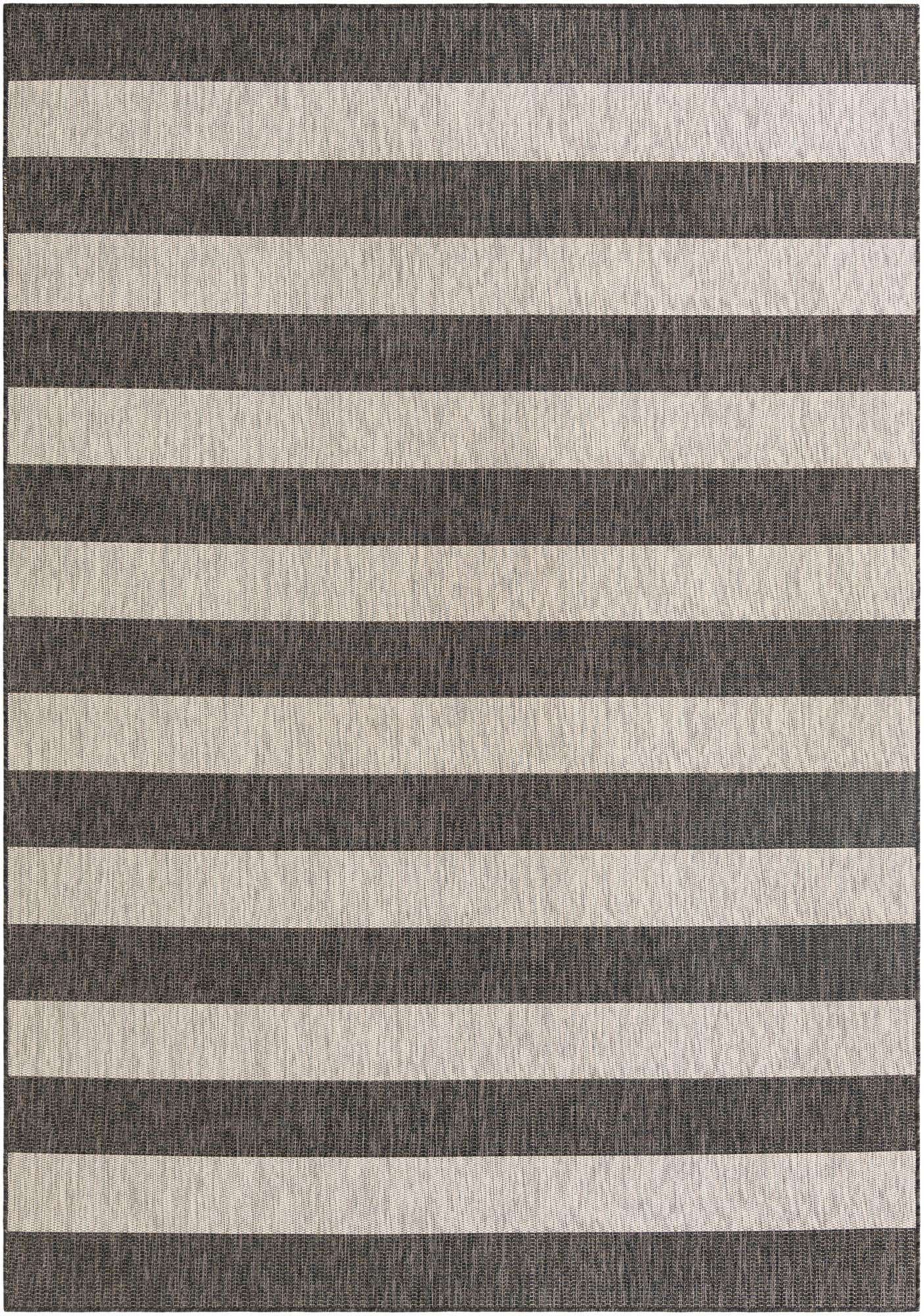 Charcoal Gray 7' 10 x 11' Outdoor Striped Rectangle Area Ru...