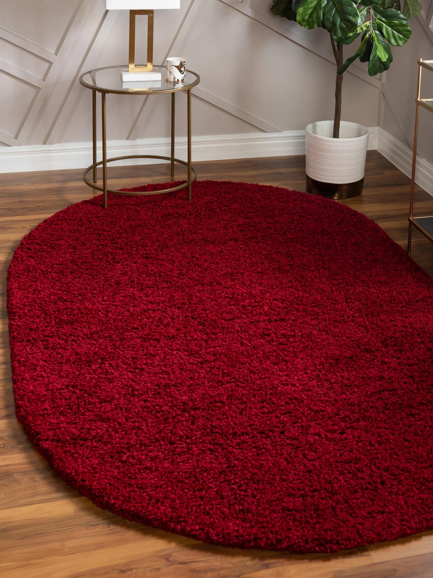 Cherry Red 3' 1 x 5' 3 Solid Shag Oval Area Rug Thick Soft ...