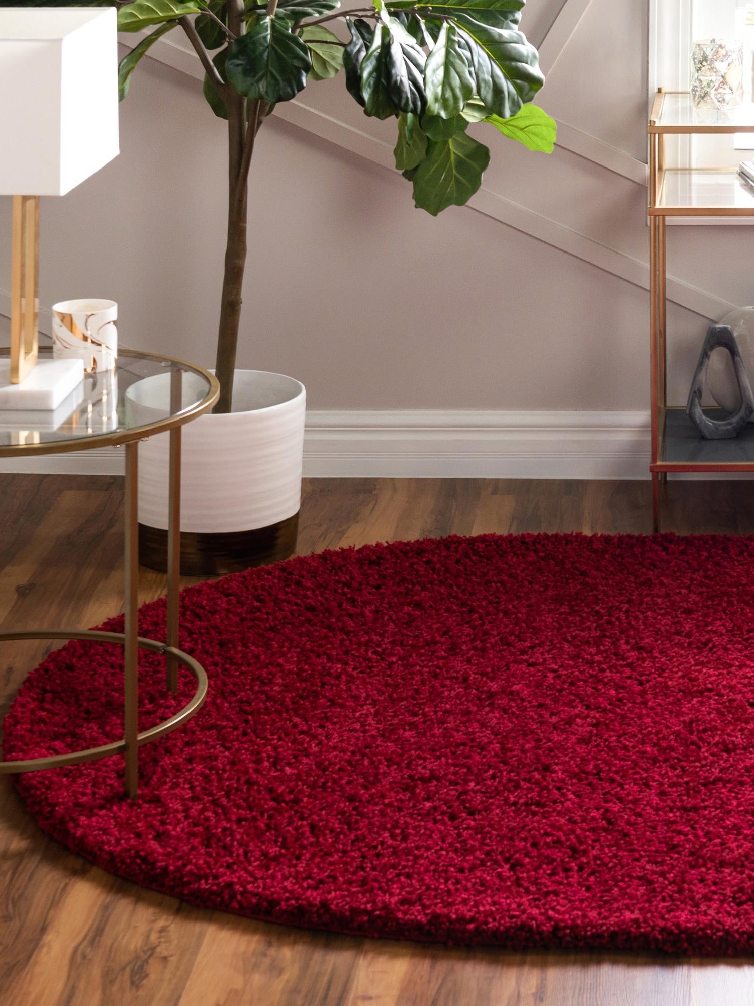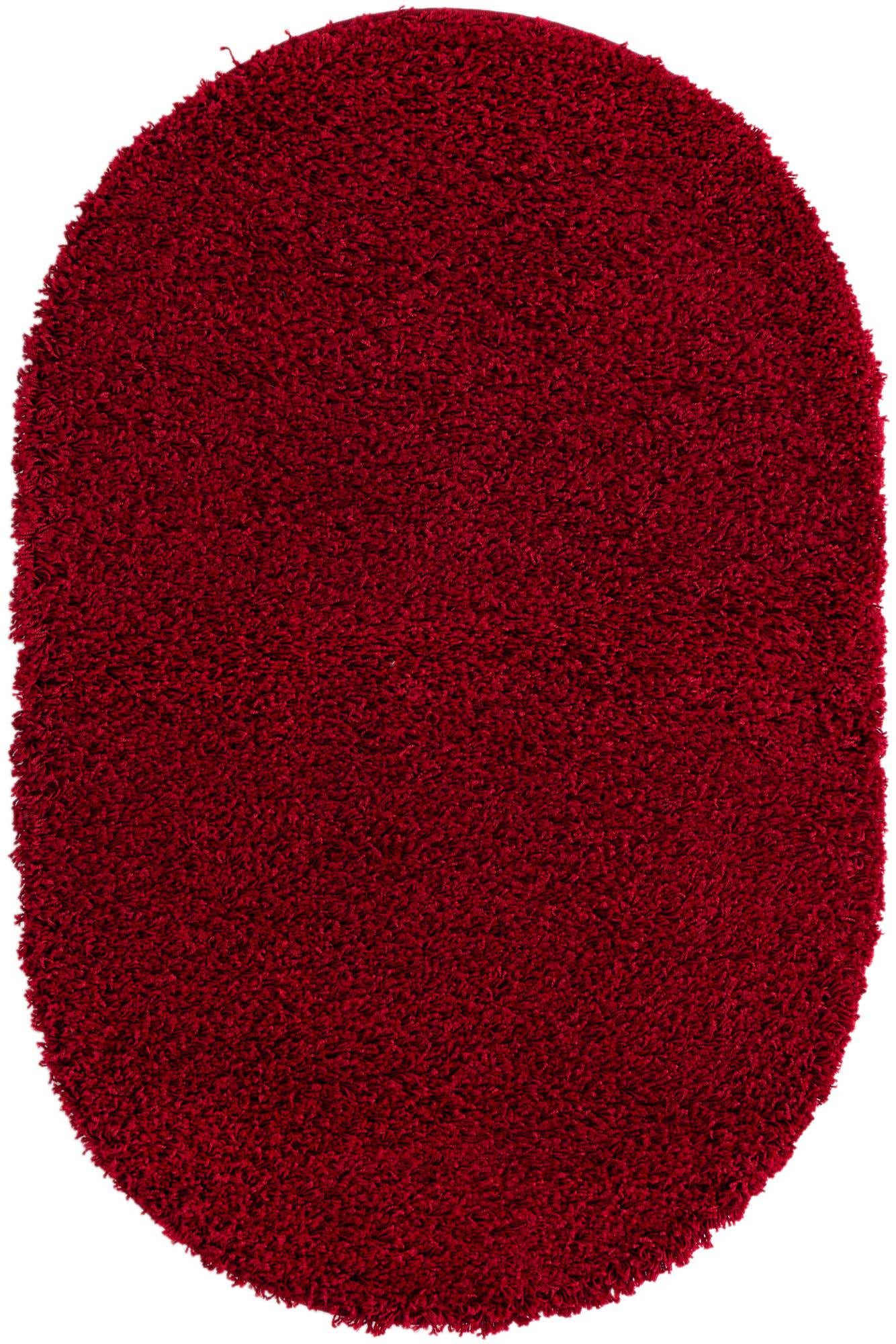 Cherry Red 3' 1 x 5' 3 Solid Shag Oval Area Rug Thick Soft Touch Fluffy & Plush Shaggy Pile