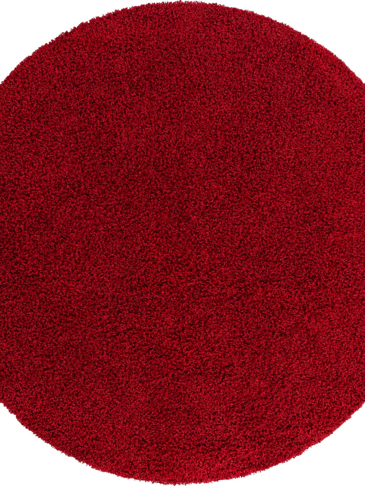 Cherry Red 7' 1 x 7' 1 Solid Shag Round Area Rug Thick Soft Touch Fluffy & Plush Shaggy Pile