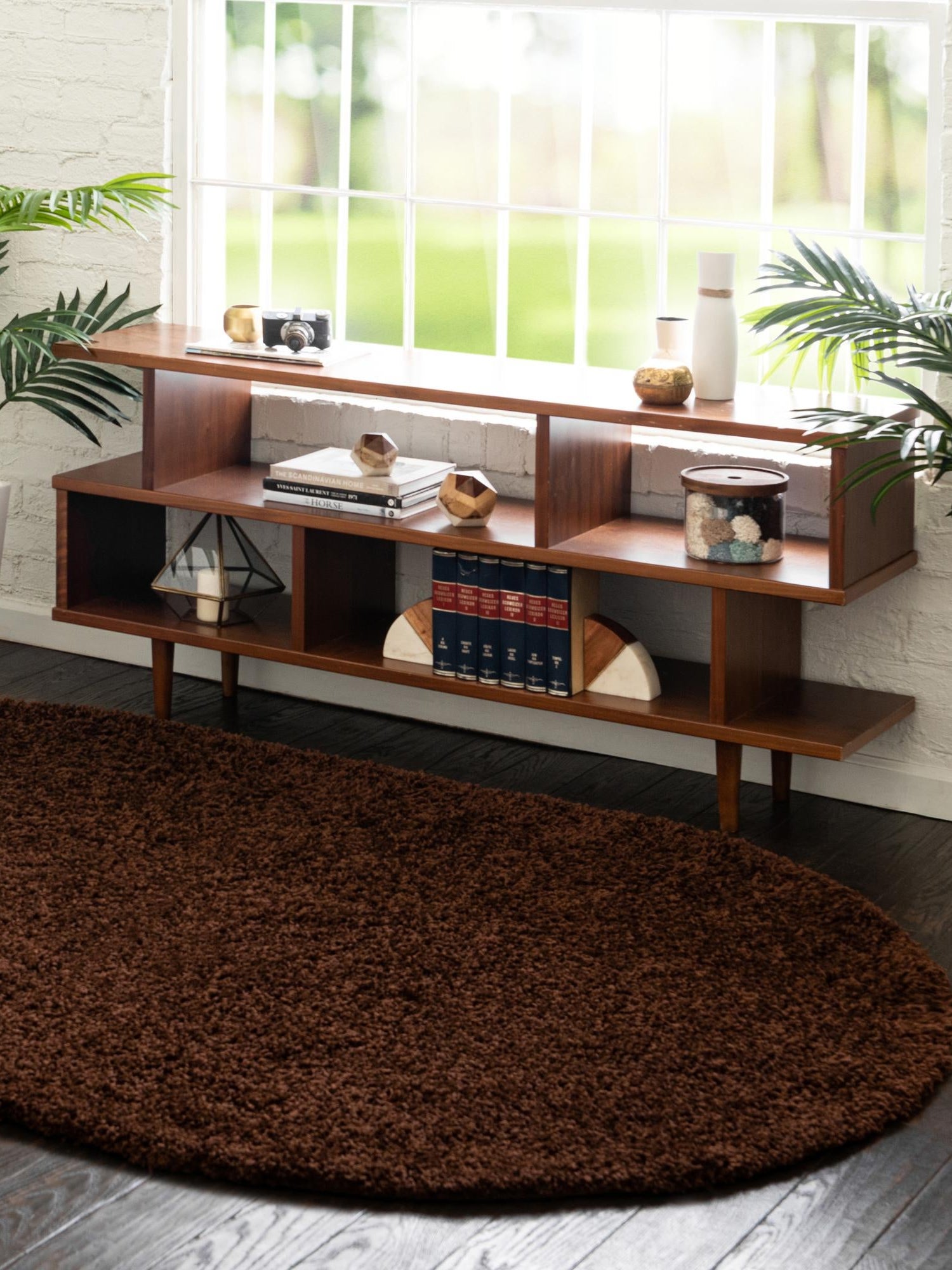 Chocolate Brown 3' 1 x 5' 3 Solid Shag Oval Area Rug Thick ...