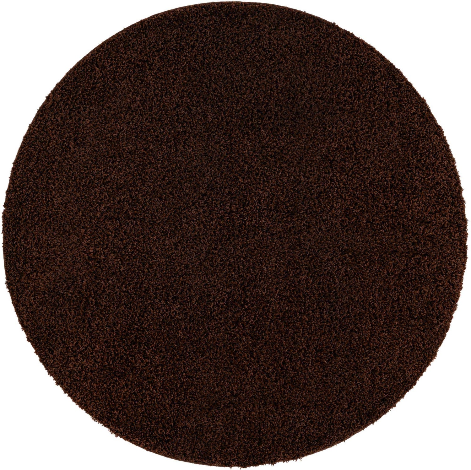 Chocolate Brown 6' 1 x 6' 1 Solid Shag Round Area Rug Thick Soft Touch Fluffy & Plush Shaggy Pile