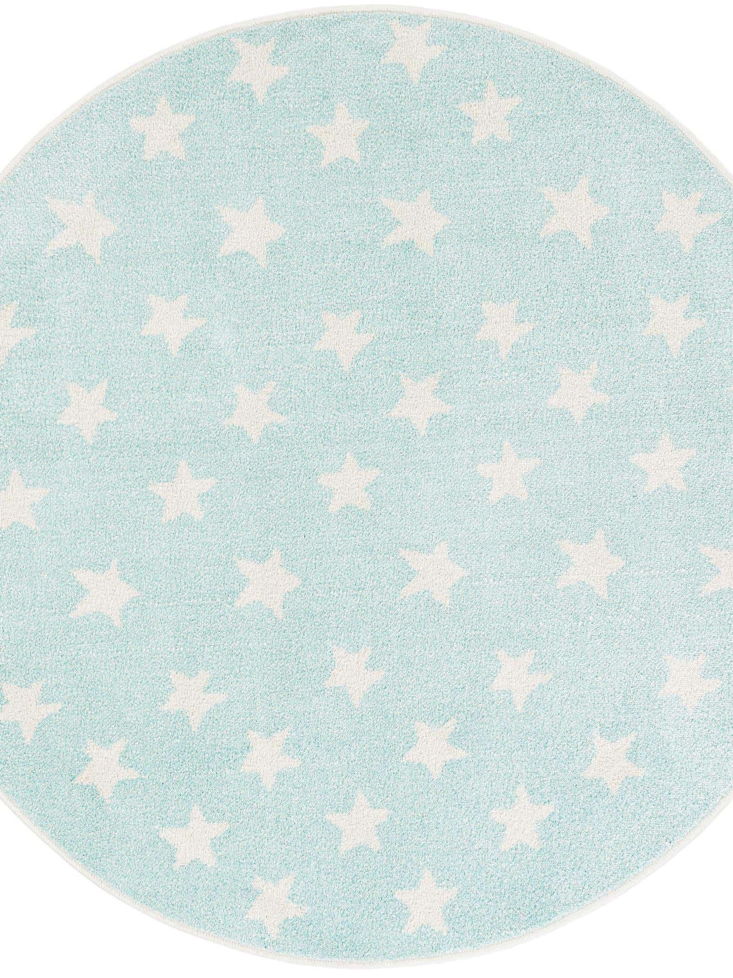 Clear Blue 5' 1 x 5' 1 Whimsy Kids Round Area Rug for Baby Nursery, Toddler Playroom, Bedrooms
