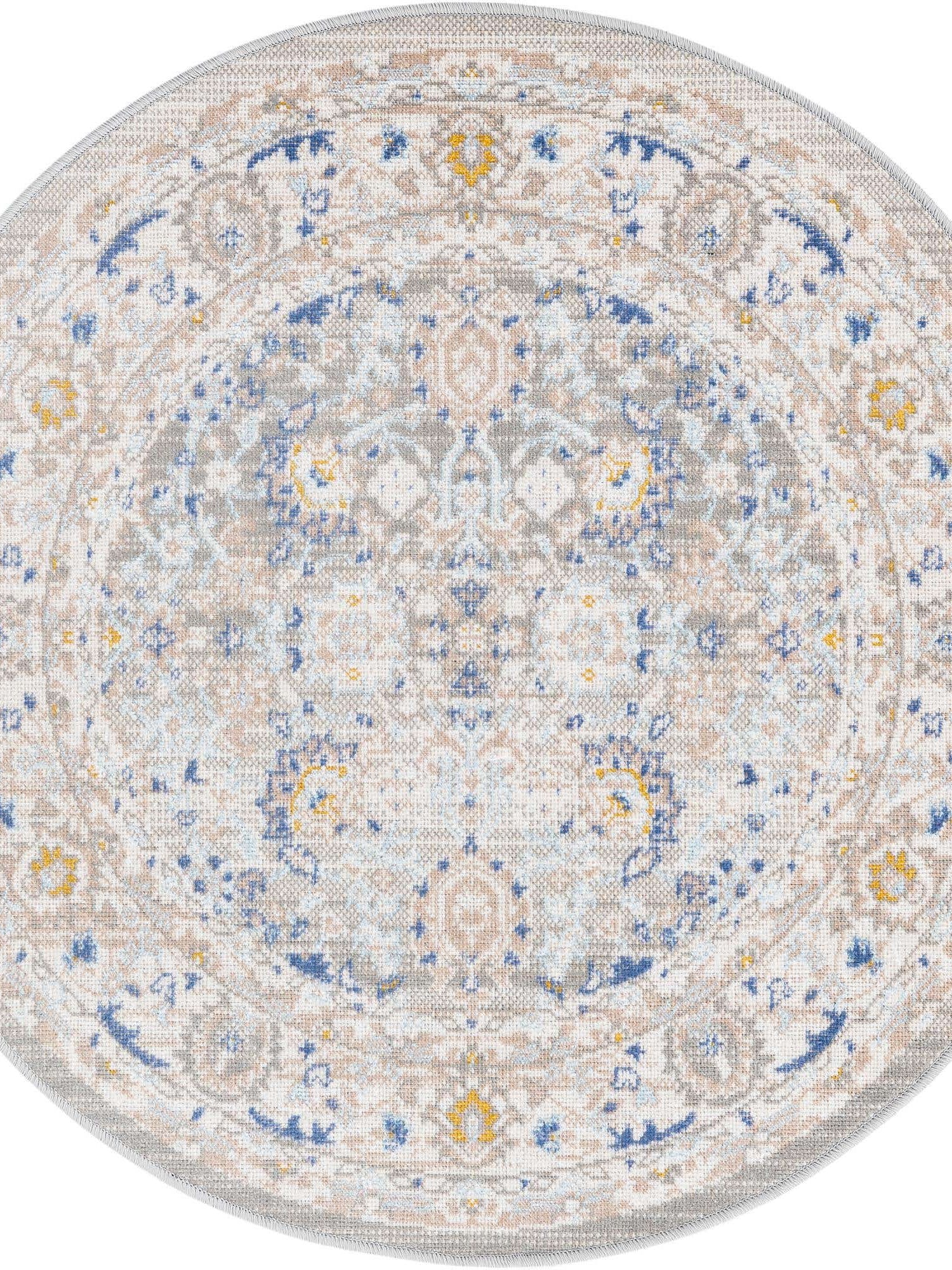 Washable Gray 2' x 2' Timeless Round Area Rug Easy to Clean Stain Resistant & Durable