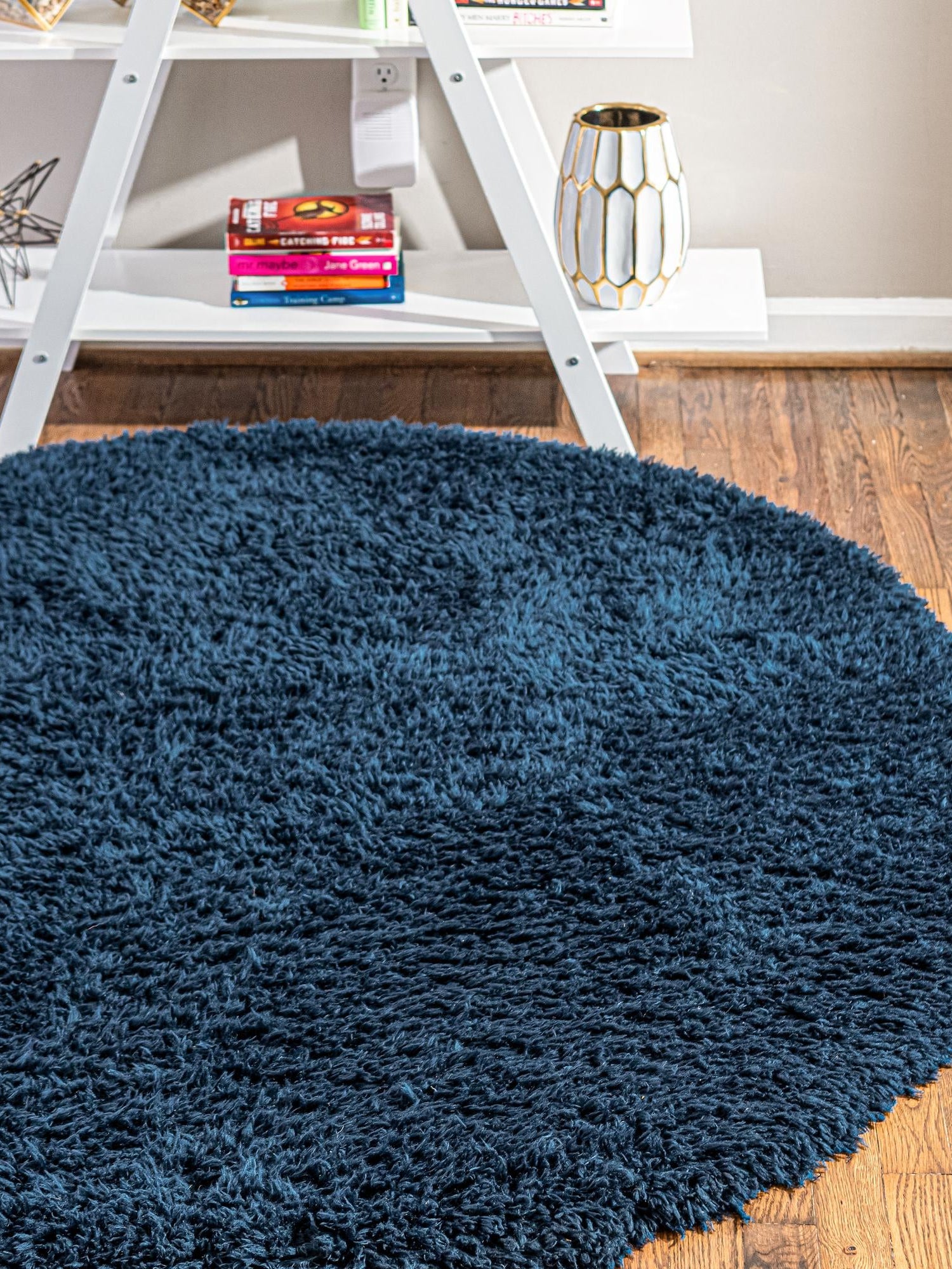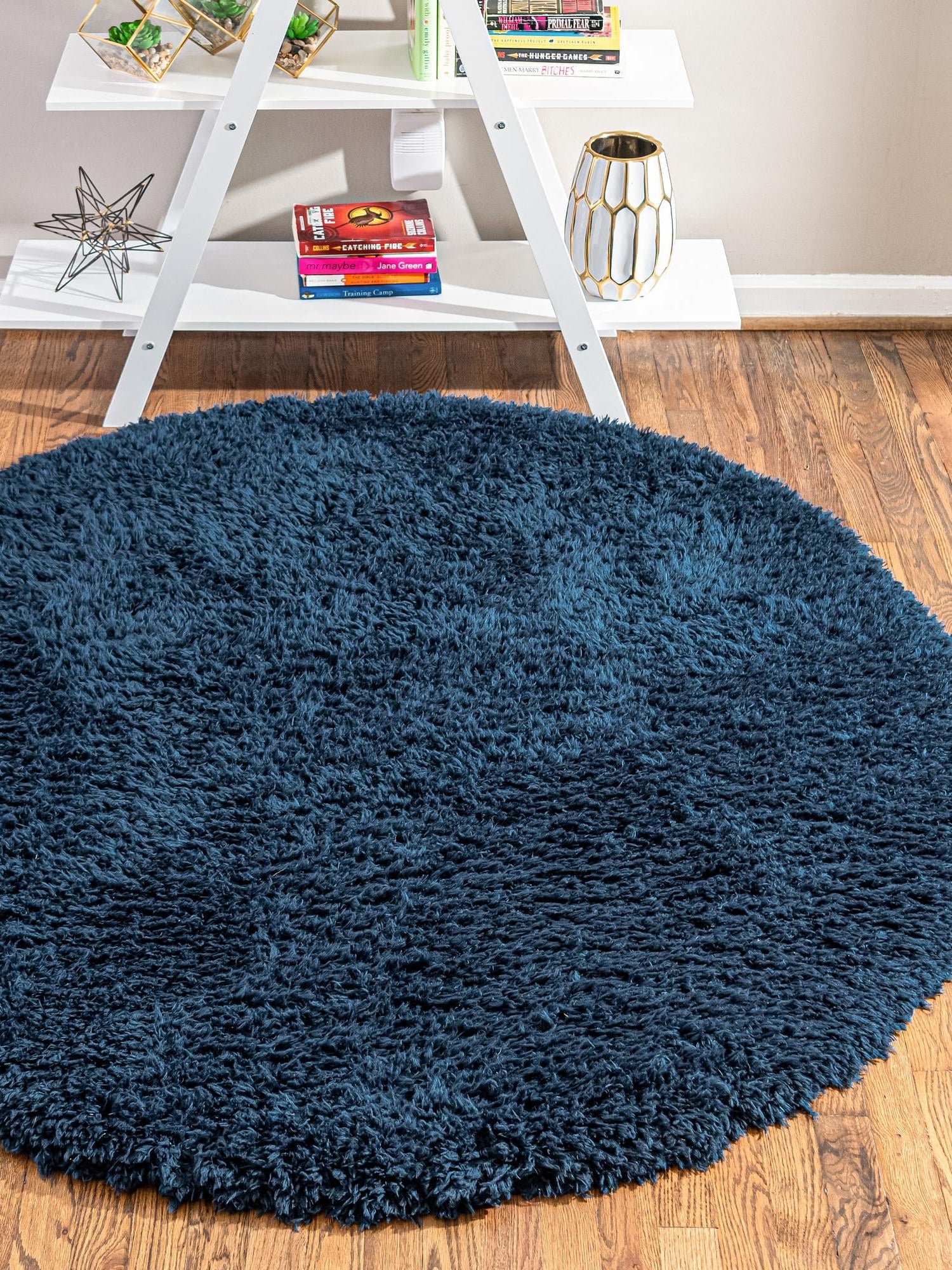 Cobalt 8' x 8' Infinity Shag Round Area Rug Thick Soft Touc...