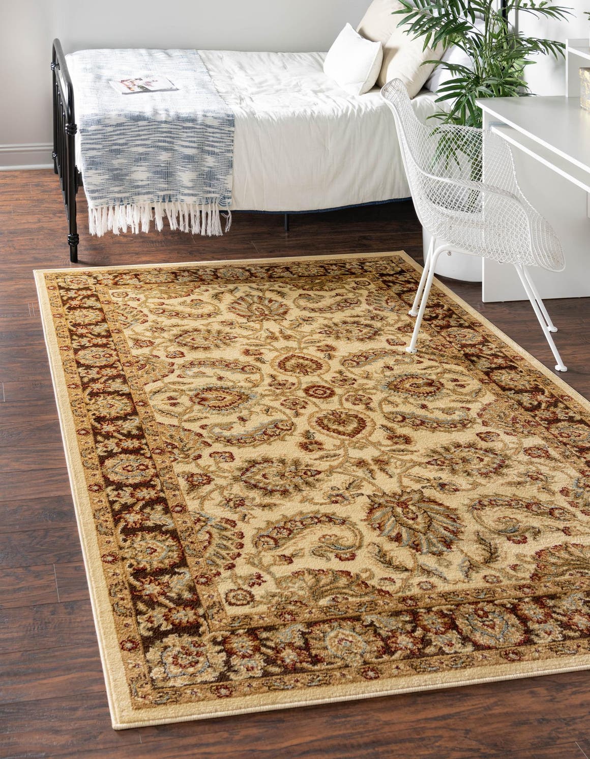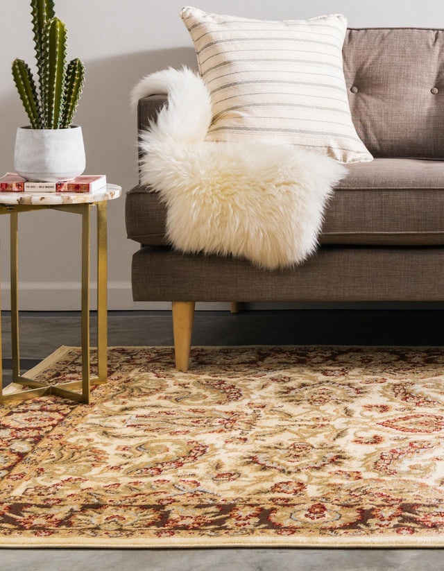 Washable Beige 7' 6 x 7' 6 Timeless Square Area Rug Easy to Clean Stain Resistant & Durable