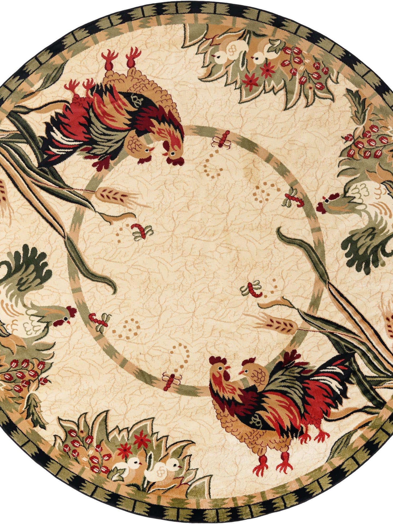 Cream 10' x 10' Barnyard Round Area Rug 100% Polypropylene With Cotton Backing Traditional Cottage Rustic Classical Carpet for Living Office Bedroom Dining Room Easy to Clean Long Lasting & Durable Decor