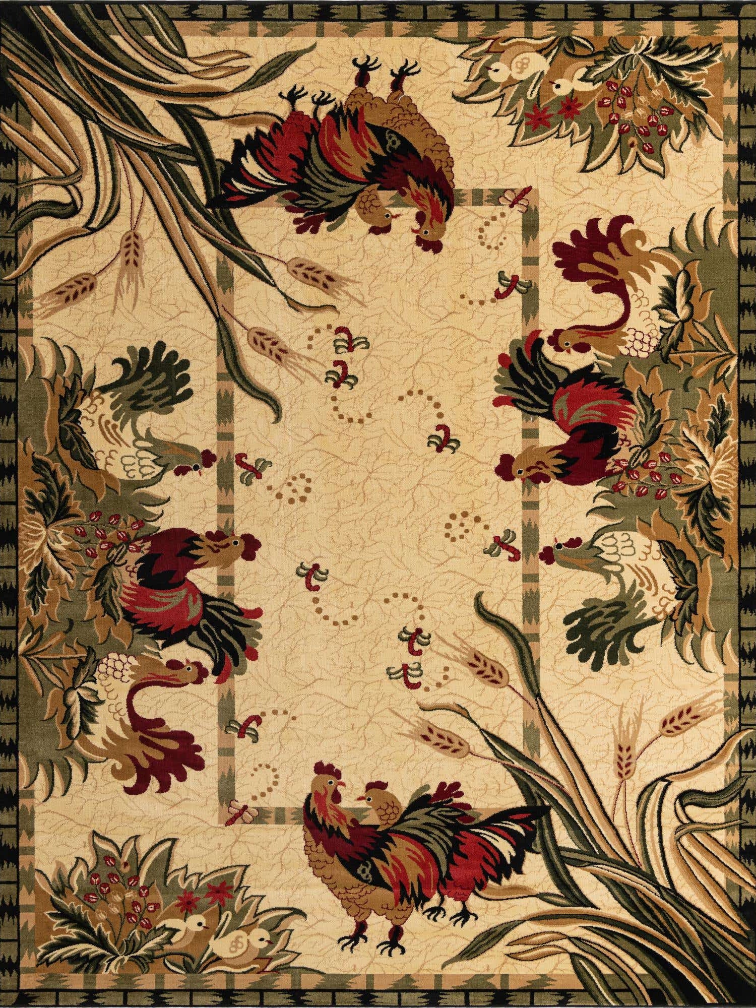 Cream 10' x 13' 1 Barnyard Rectangle Area Rug 100% Polypropylene With Cotton Backing Traditional Cottage Rustic Classical Carpet for Living Office Bedroom Dining Room Easy to Clean Long Lasting & Durable Decor