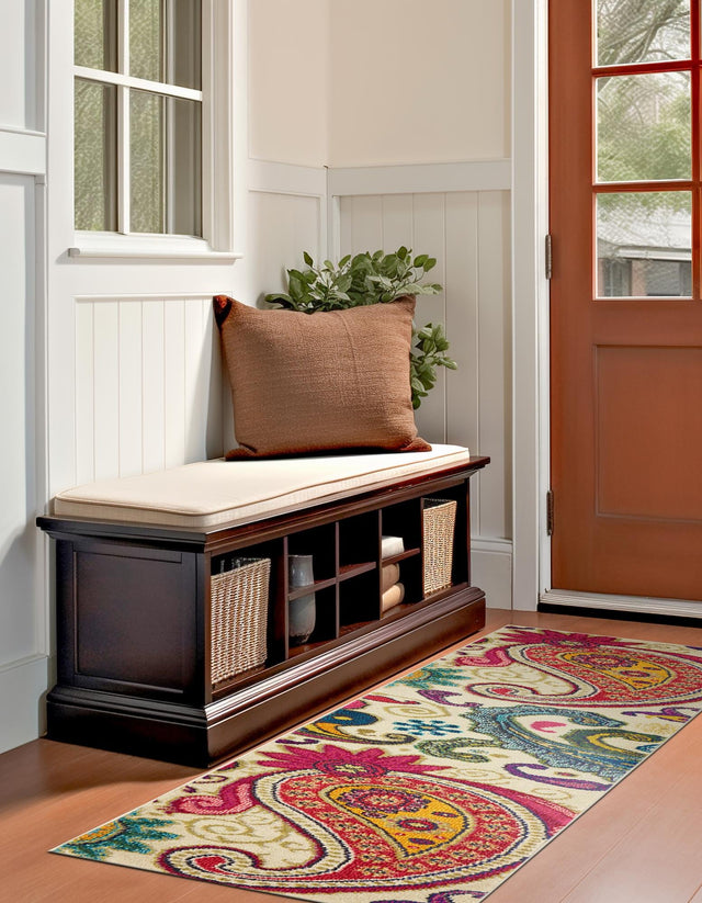 Cream 2' 2 x 6' 9 Estrella Runner Area Rug 100% Polypropylene Non-Shedding Stain Resistant Carpet Colorful Modern Abstract Design Easy Clean for Home Decor