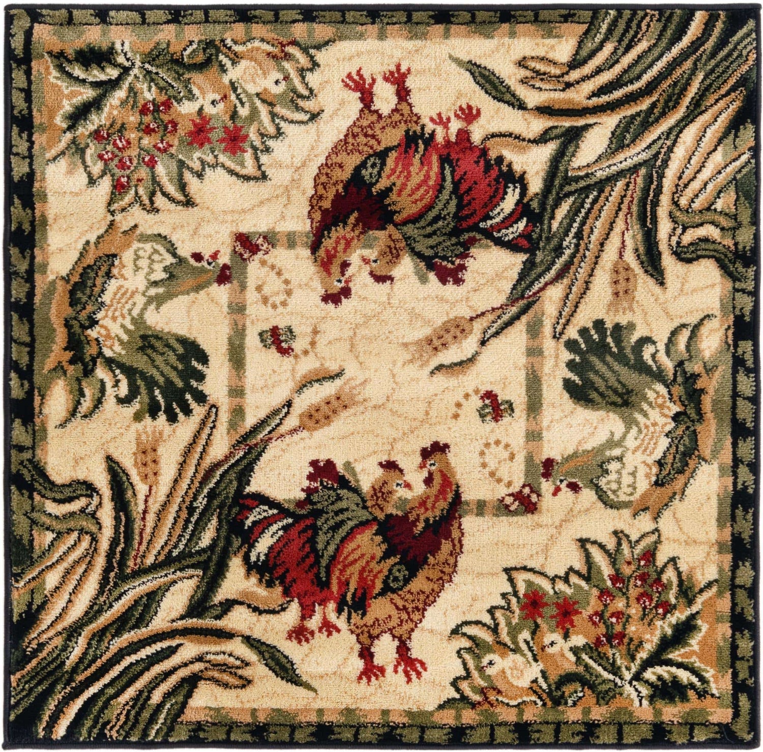 Cream 3' 1 x 3' 1 Barnyard Square Area Rug 100% Polypropylene With Cotton Backing Traditional Cottage Rustic Classical Carpet for Living Office Bedroom Dining Room Easy to Clean Long Lasting & Durable Decor