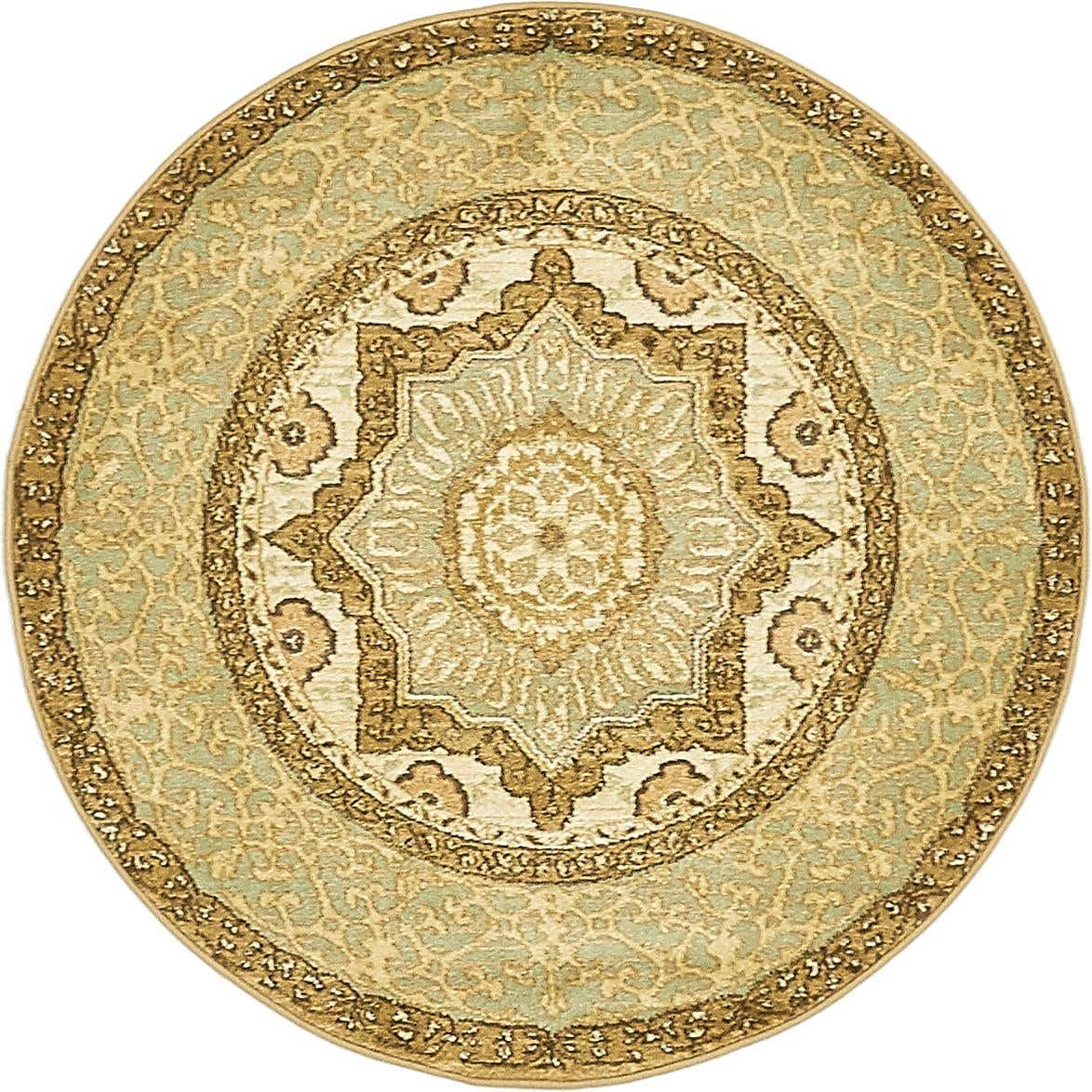 Washable Blue 5' x 5' Timeless Round Area Rug Easy to Clean Stain Resistant & Durable