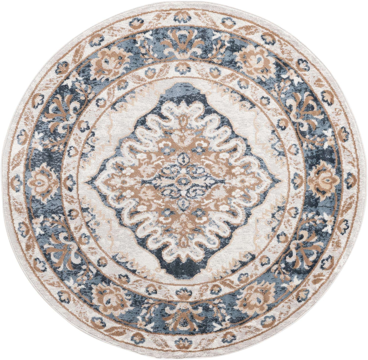 Washable Blue 5' x 5' Timeless Round Area Rug Easy to Clean Stain Resistant & Durable